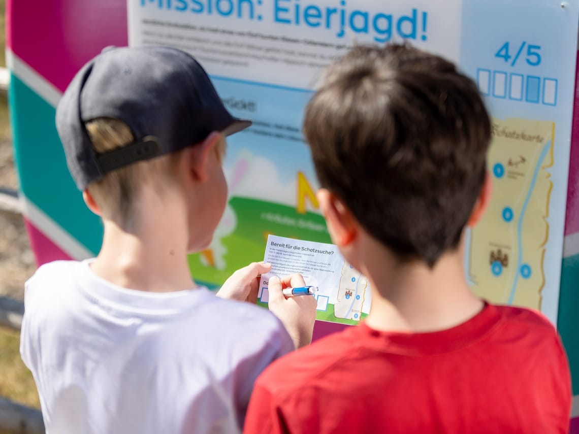 In der Ferienregion Mayrhofen-Hippach ist von 14. bis 21. April der Hase los! Die süßen Osternester stecken im Safe – doch Hoppel hat den Code vergessen. Kannst du ihm helfen, das Osterfest zu retten? Finde alle Riesen-Ostereier, löse die Rätsel und trage die passenden Ziffern in die Felder auf dieser Karte ein.