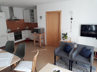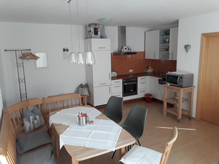 Unsere Ferienwohnung bietet Unterkunft für 2 - 8 Personen. Sie besteht aus einer großzügig eingerichteten Wohnküche mit Sat-TV, Sitzecke, Couch u. eigenem Balkon. Insgesamt 4 Doppelzimmer, jeweils 2 Doppelzimmer mit 1 Dusche/WC, 1 WC separat. Eigenes