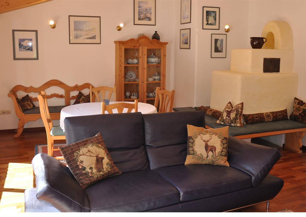 mit Zirbenholz eingerichtet, Garderobe, Wohnraum mit Sitzecke, Couch (Zusatz-Aufbettung möglich) und Kabel-TV, Schlafzimmer mit Kabel-TV, Badezimmer mit Badewanne, Doppelwaschbecken, Kosmetikspiegel, Haarföhn und WC, kleiner Kühlschrank, Safe, Telefon und