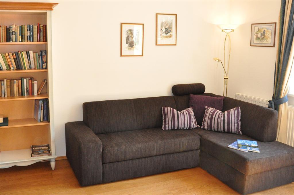 Landhausappartment 90 m2 im zweiten Stock des gegenüberliegenden Försterhauses in absolut verkehrsberuhigter Lage. Zwei separate Schlafzimmer mit Dachschräge, geräumiges Wohnzimmer mit Couch und Landhausmöbeln, private Südterrasse und zusätzlicher Balkon.