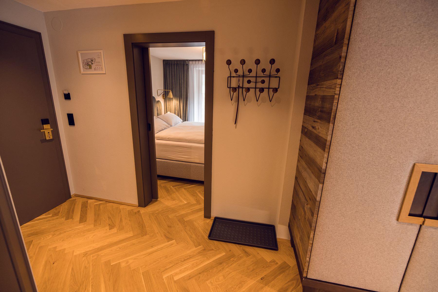 Unser Cosy Mini-Doppelzimmer für verschmuste Pärchen, freiheitsliebende Singles und selbständige Kids. Themenschwerpunkt: Alpin-urbaner Style, klein und fein für Fortgeschrittene, mit duftenden Naturhölzern, aber ohne lästige Morgensonne im Gesicht.