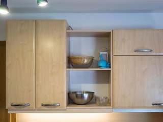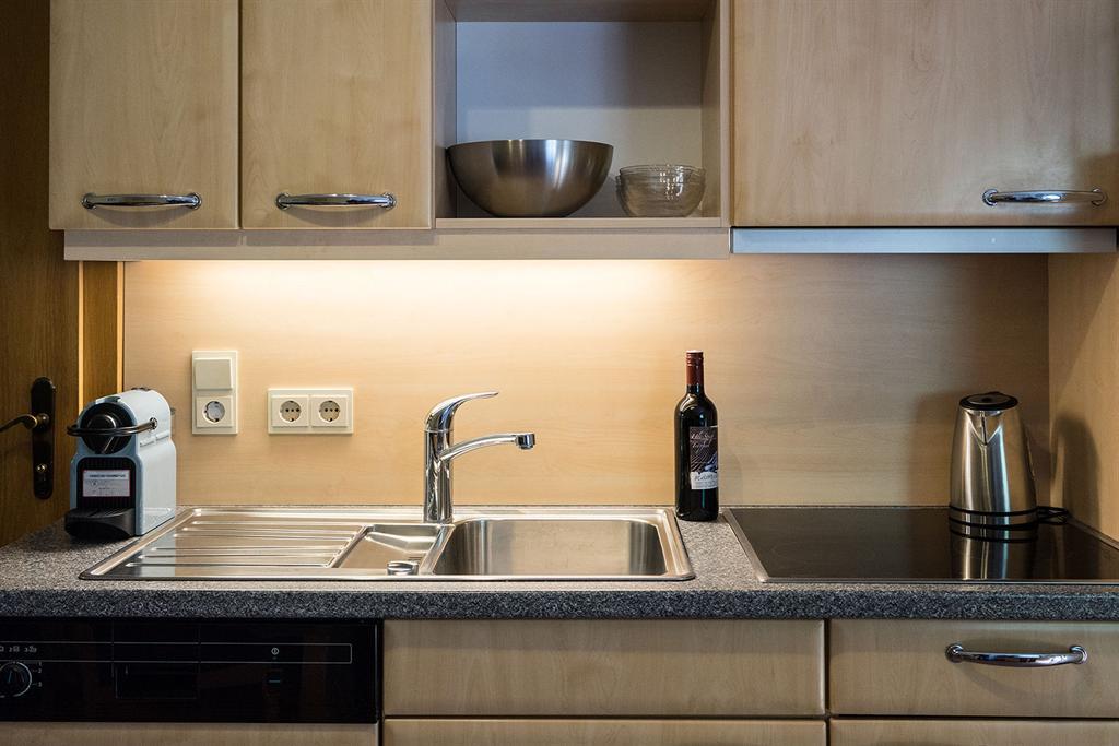 Neben der Standardeinrichtung (Kostenloses W-Lan, Safe, Kabel TV mit Flat HD TVs in allen Zimmern, Nespresso - Kaffeautomat, Wasserkocher, Mikrowelle, Ceran-Kochfeld, Geschirrspüler, Kühl-Gefrierschrank, Dunstabzug, Gläser, Besteck, Koch- und Essgeschirr,