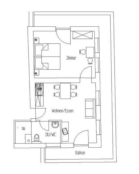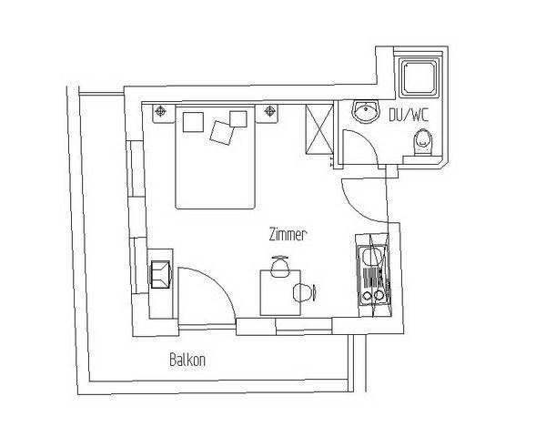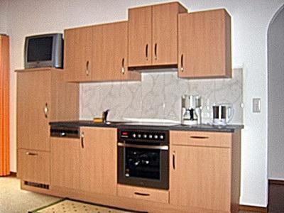 Appartement "Ahorn", Personen 2, Größe ca. 23 m² / 1. OG Ausstattung: großzügiger Balkon, Wohn- und Schlafraum mit Doppelbett (Beistellbett für Kind erfragen), Kabel-TV, W-LAN, Küchenzeile mit Kühlschrank enthalten Mikrowelle, Wasserkocher,