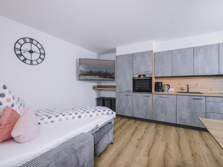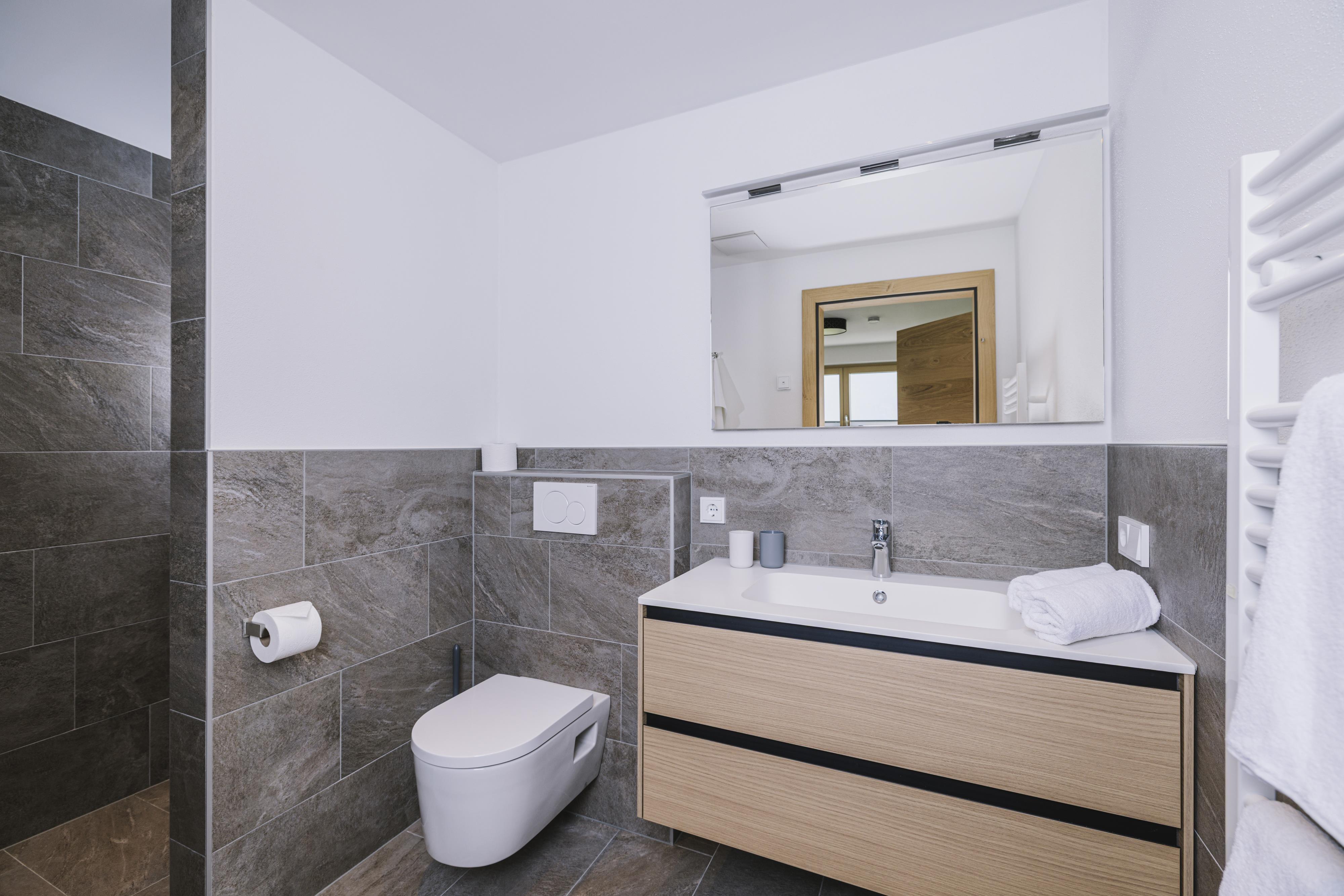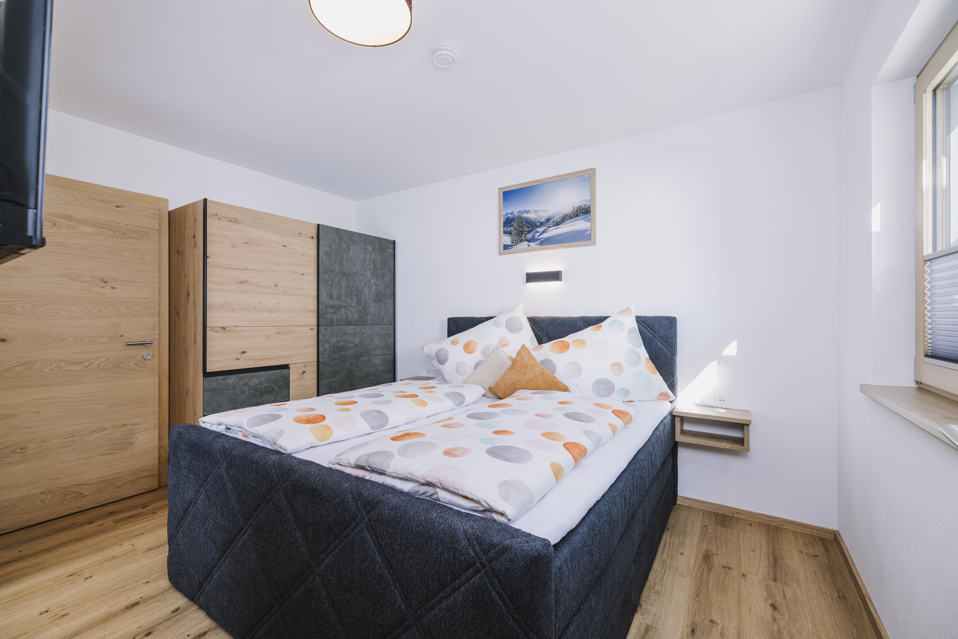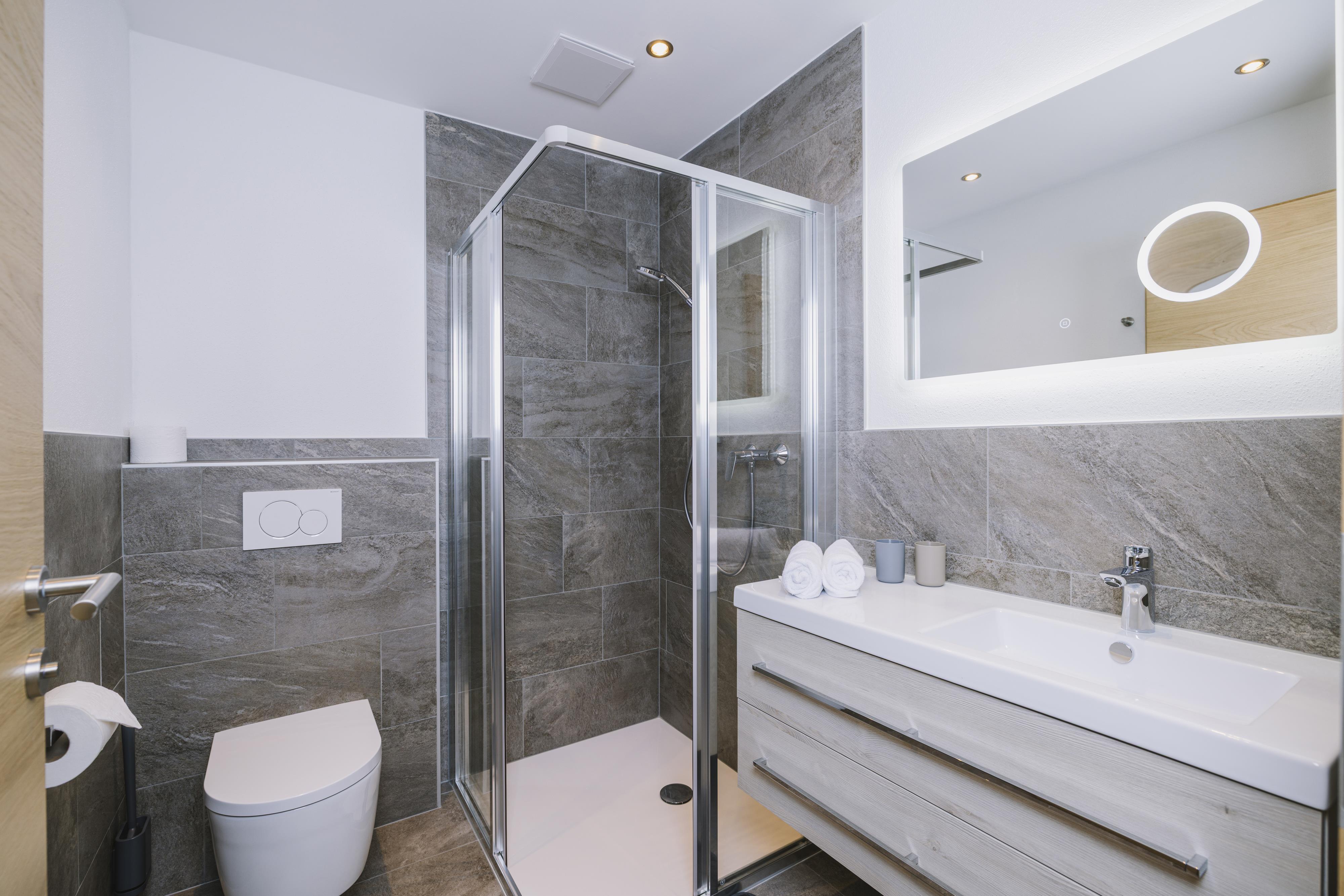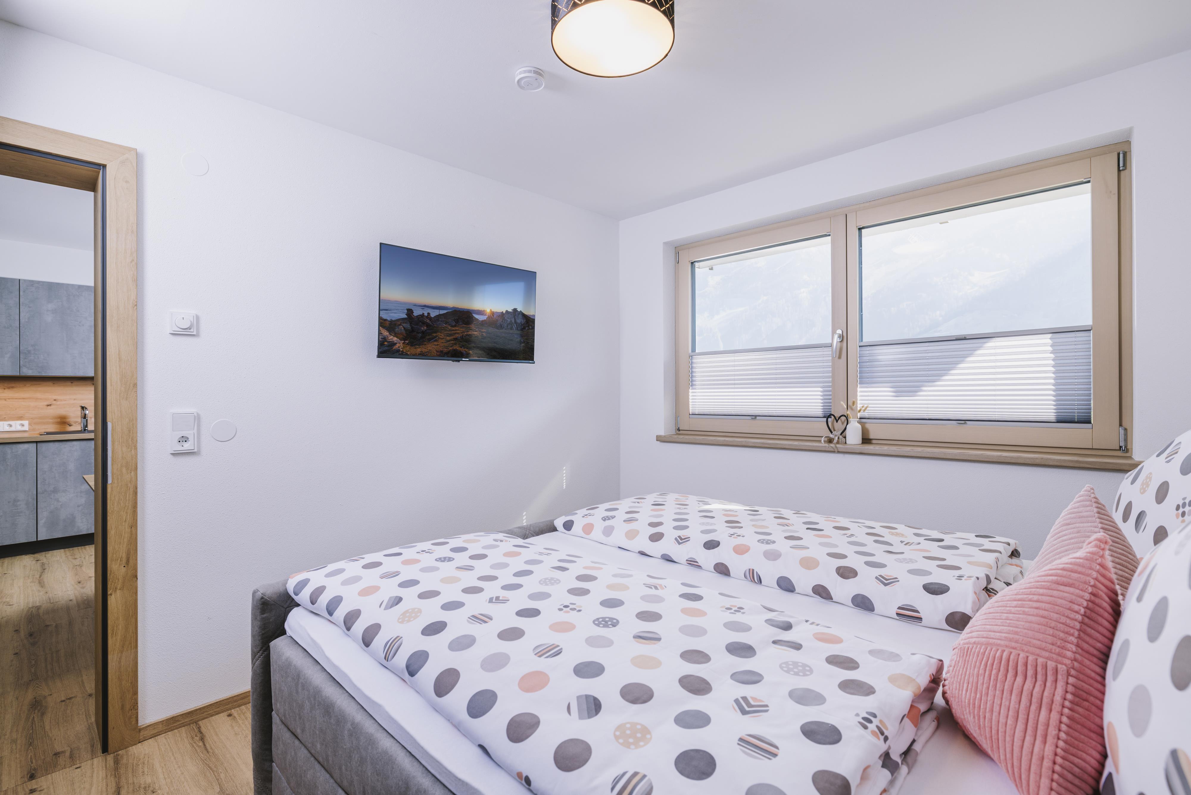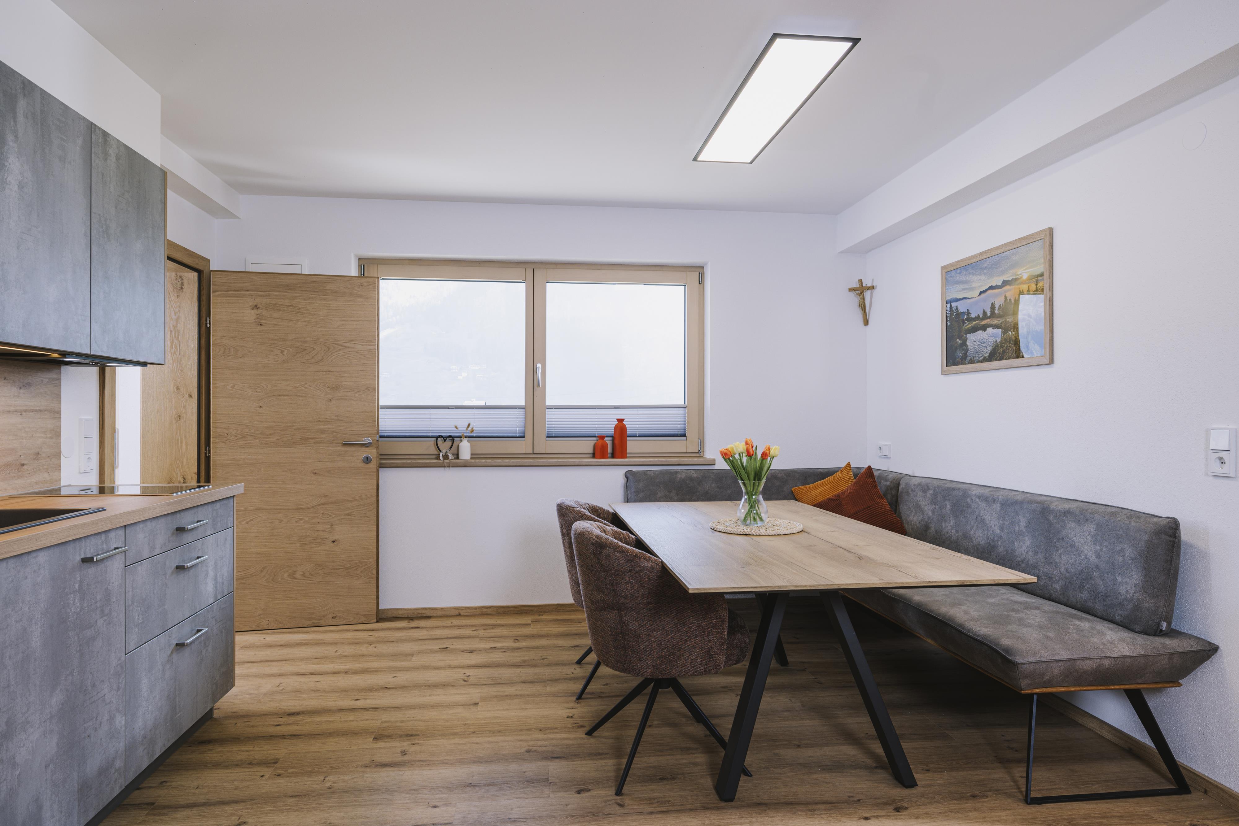 Die neu errichtete, moderne Wohnung verfügt über zwei Schlafzimmer mit jeweils eigenem Bad sowie einen großzügigen Wohn- und Essbereich mit Schlafcouch, TV und voll ausgestatteter Küche. Ein Skischuhtrockner und Skiaufhänger im Eingangsbereich sorgen für