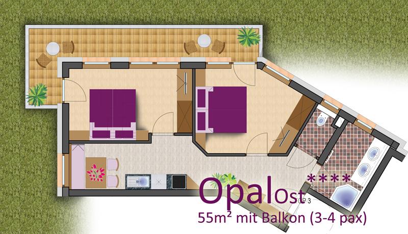 Opal Ost/West 55m² mit Balkon