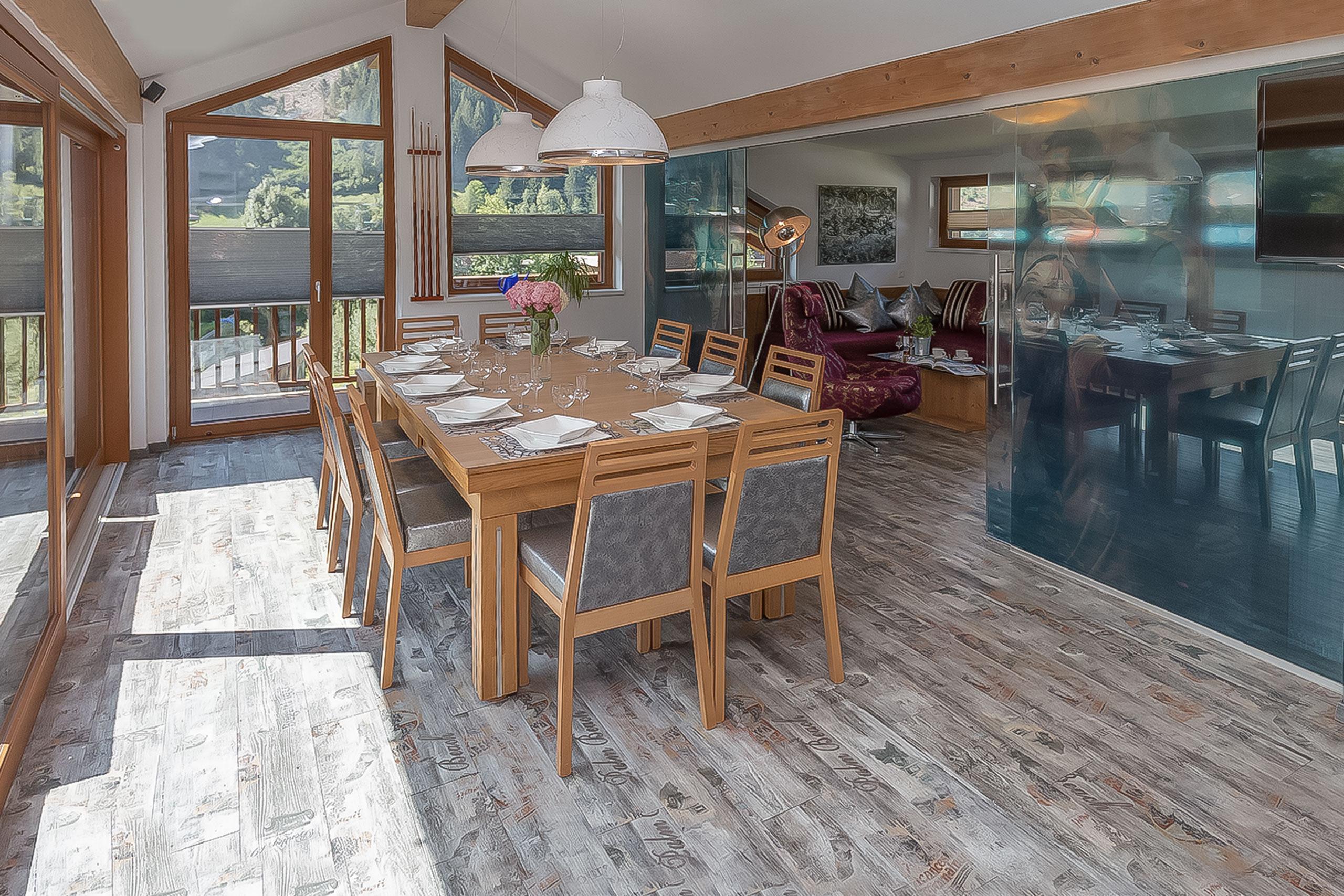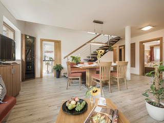 Vorzüge: Beste Lage - direkt neben dem Skilift und der Haupteinkaufstraße. Moderne Ferienwohnungen mit hochwertiger Ausstattung und ganz privaten Highlights, wie zum Beispiel Ess-Billardtisch-Kombination, private Sauna im Apartment, Innenhof mit Wasserfall, Ferienwohnungen auf 2 Ebenen mit Sonnenbalkon und Dachterrasse und viele weitere Annehmlichkeiten lassen Ihren Urlaub zu etwas ganz besonderen werden. Außerdem bietet das 380m² große Ferienhaus mit 8 Schlafzimmern und neuem, privaten Wellnessbereich ausreichend Platz für bis zu 16 Personen.