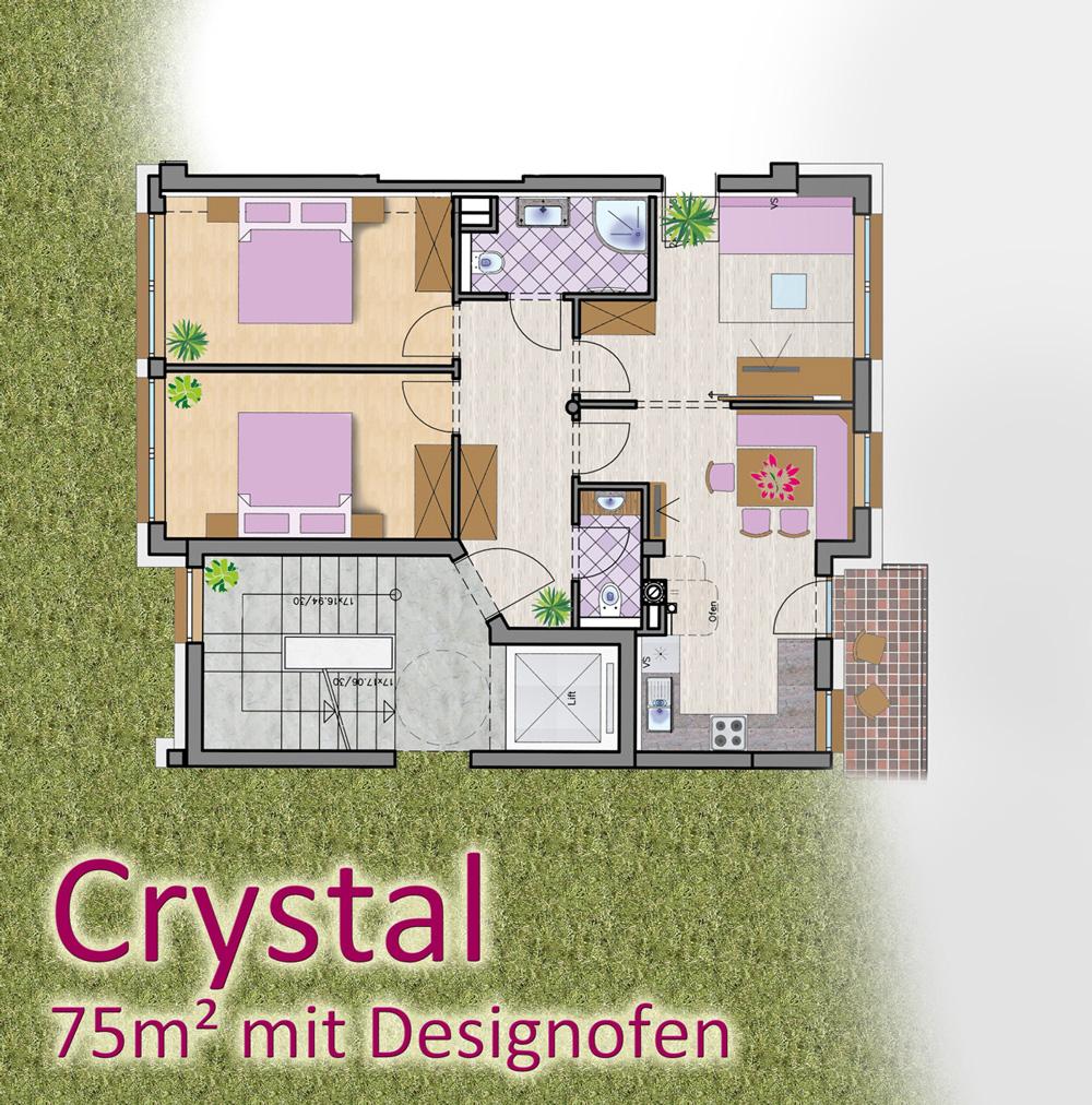 Crystal****: 75m², 3 Schlafzimmer und Designofen