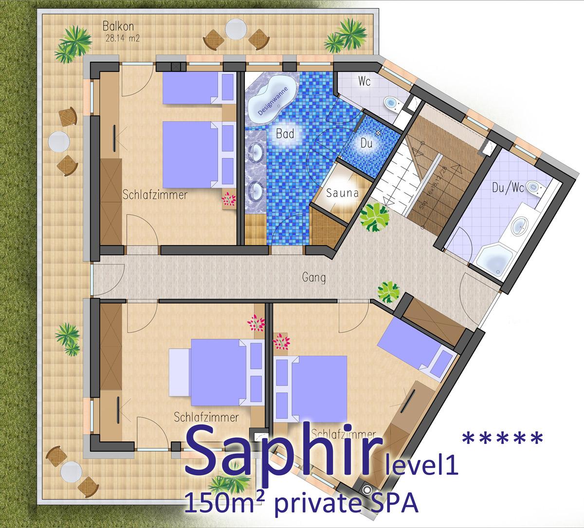 Saphir 150m² mit privater Sauna & Dachterrasse