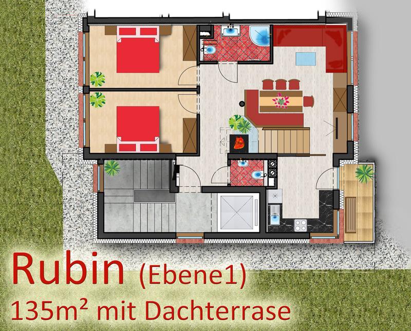 Rubin*****: 135m² Penthouse Suite mit Dachterrasse