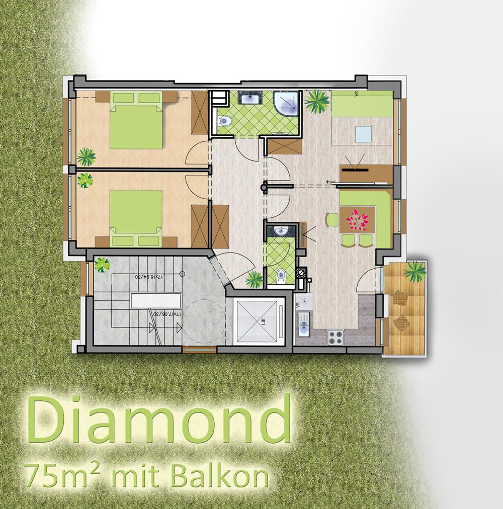 Diamond****: 75m², 3 Schlafzimmer mit Balkon