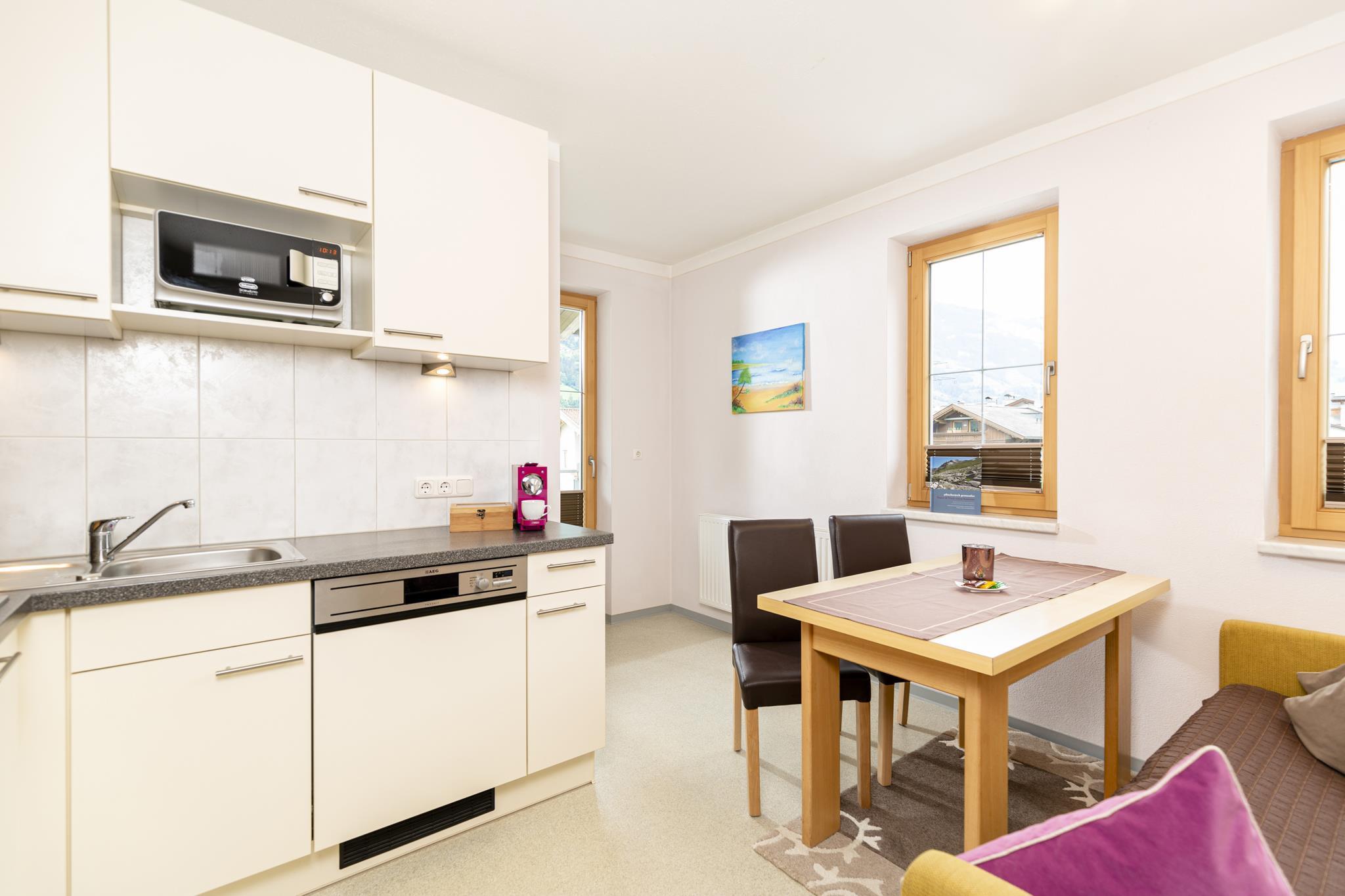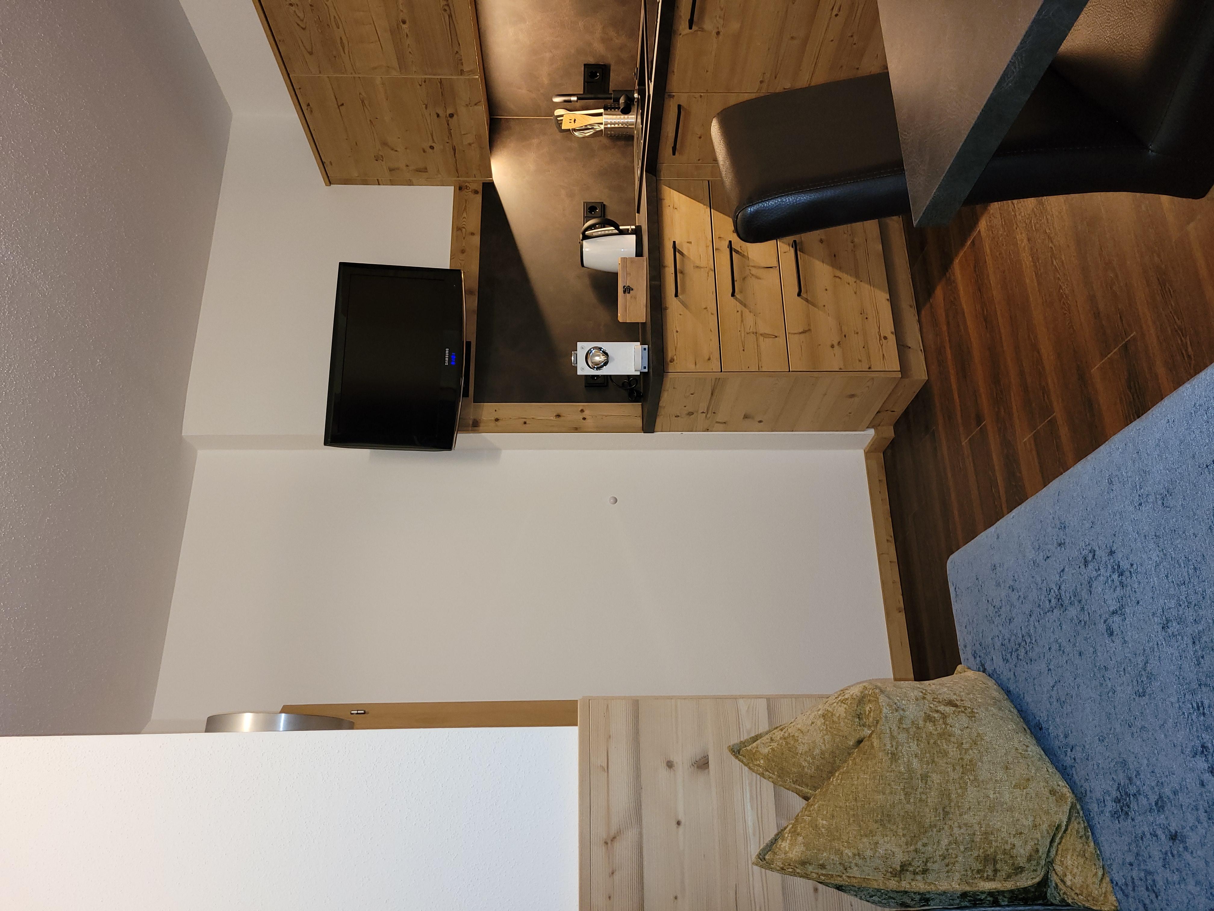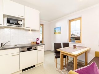 Ferienwohnung f. 2-3 Personen. Vorraum-Garderobe, Dusche/WC, 1 Schlafzimmer (Doppel- und Einzelbett), Küche mit Schlafcouch und Essecke, Spülmaschine, Backofen usw. Sat-TV. Geschirrtücher, Hand- und Badetücher sowie Bettwäsche vorhanden. Skikeller u.