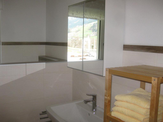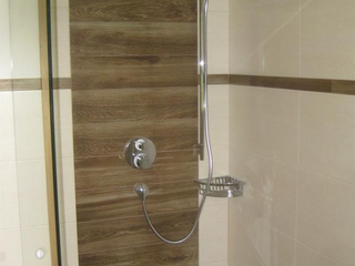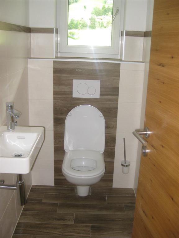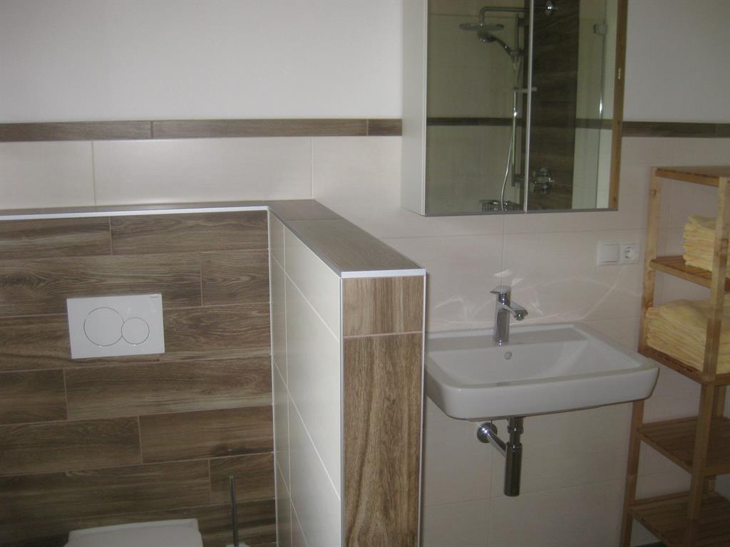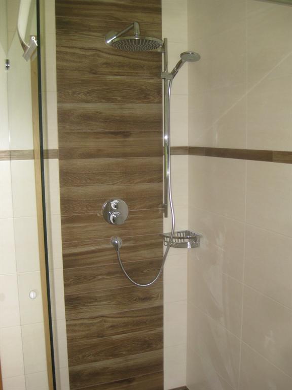 Das Badezimmer verfügt über eine Regendusche. Ein weiteres separates WC ist vorhanden.