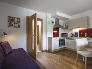 Auf 75m² befindet sich eine ansprechend ausgestattete Wohn- und Essküche mit einem großem Esstisch mit Eckbank. Zudem finden Sie dort eine Couchgarnitur und einen Flatscreen TV.