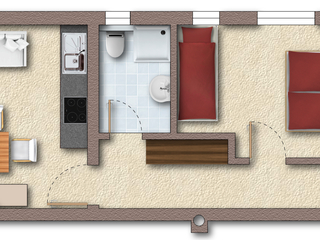 Ausstattung der der Wohnungen: 2 Schlafzimmer für 2 Personen 1 Küche 1 Wohnzimmer mit Couch und Extra-Bett 1 Badezimmer 1 separates WC 1 Balkone Bettwäsche, Handtücher und Tischwäsche sind vorhanden. EXTRA-Bonus: Freier Eintritt ins Erlebnisbad