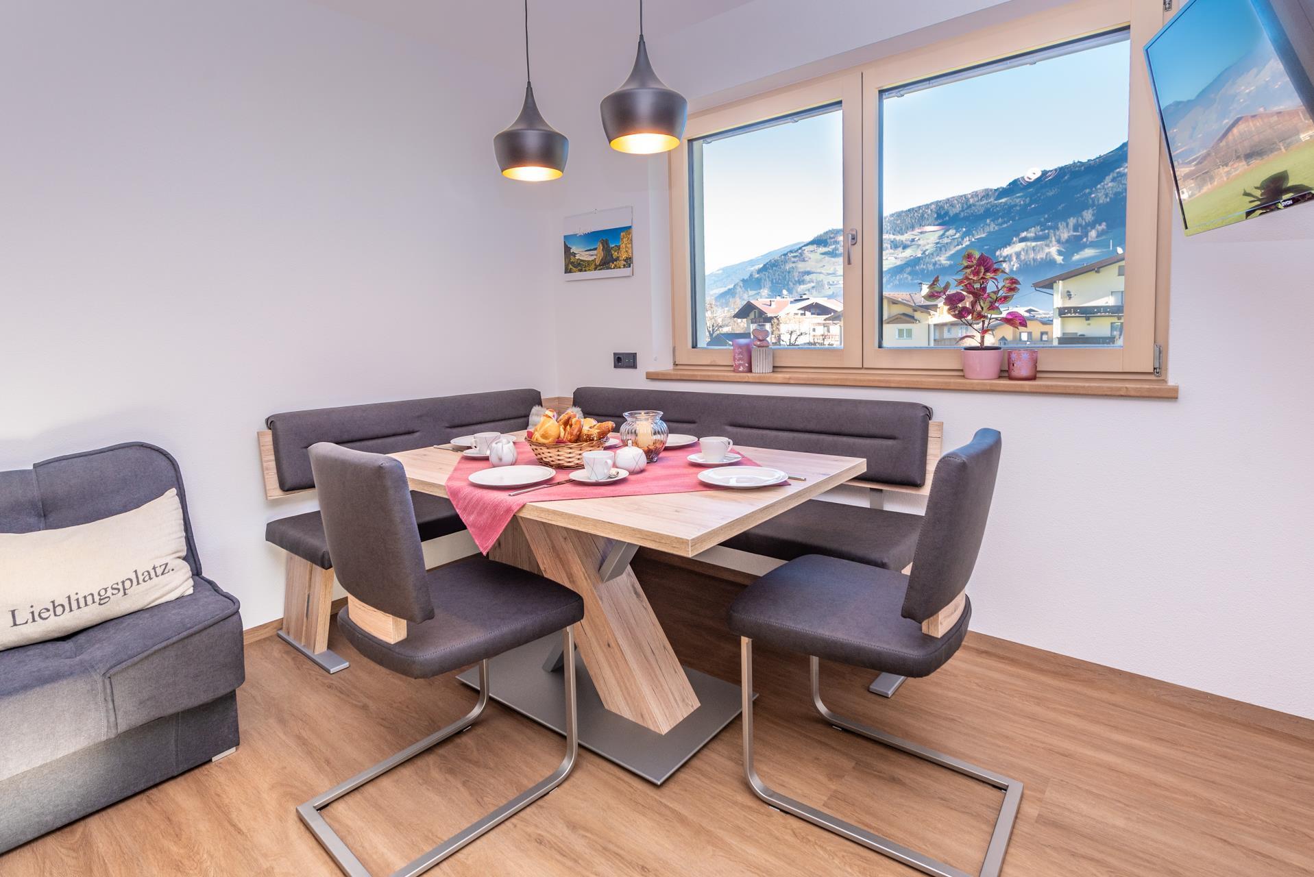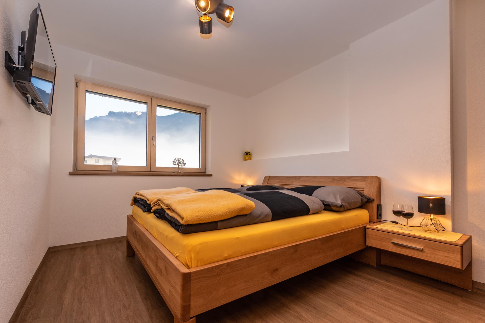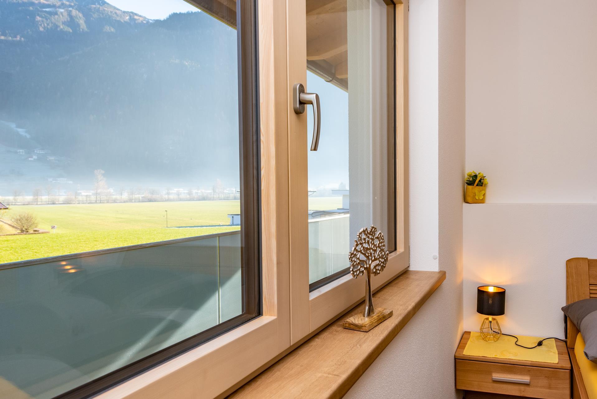Genießen Sie die Aussicht auf dem großen geräumigen Balkon auf die Zillertaler Bergwelt. Entspannen Sie in den zwei gemütlich eingerichteten Schlafzimmern und kommen Sie zur Ruhe.
