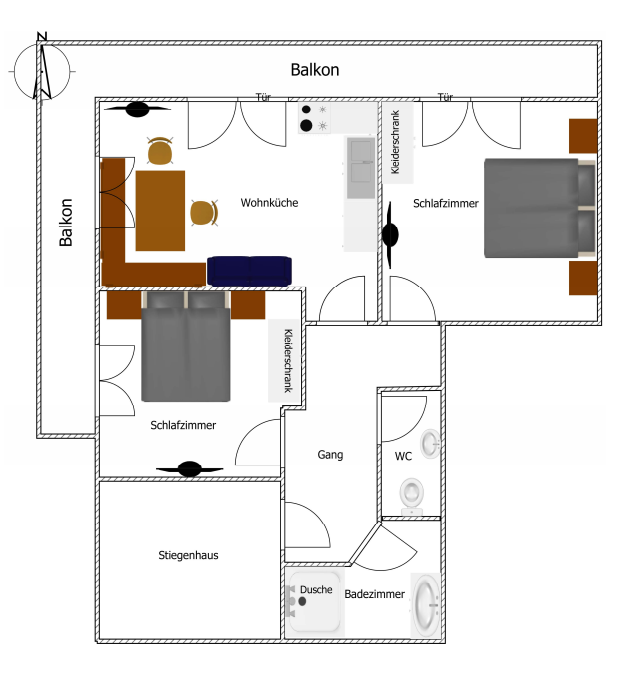 Appartement mit 2 Schlafzimmern
