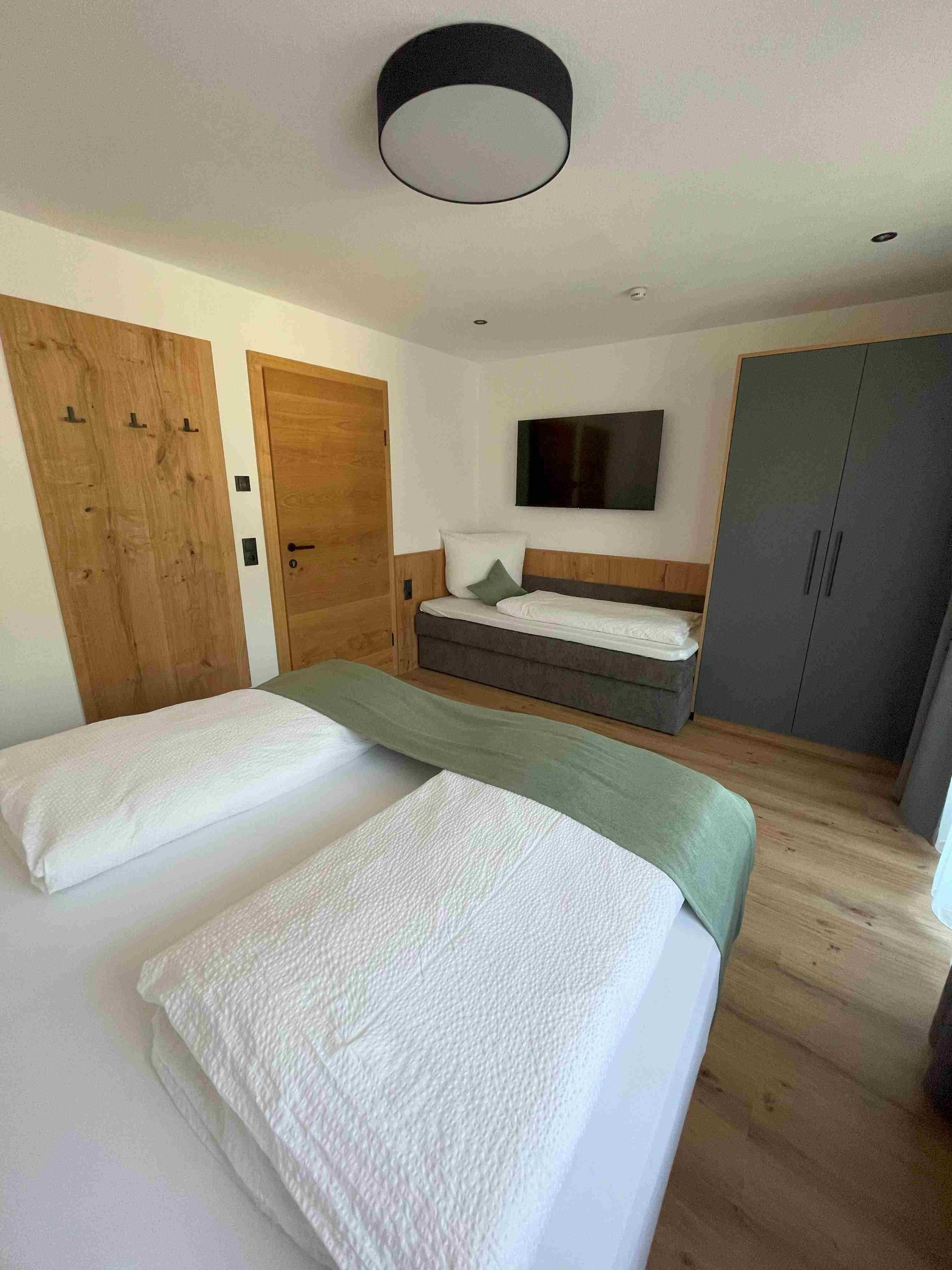 Unser neues Apartment Paul ist ideal für Familien und Paare und bietet modernen Komfort in idyllischer Lage: Schlafzimmer 1: Boxspringbett, Kleiderschrank, TV, Balkon. Schlafzimmer 2: Boxspringbett, Kleiderschrank, TV, Balkon. Badezimmer: Dusche,