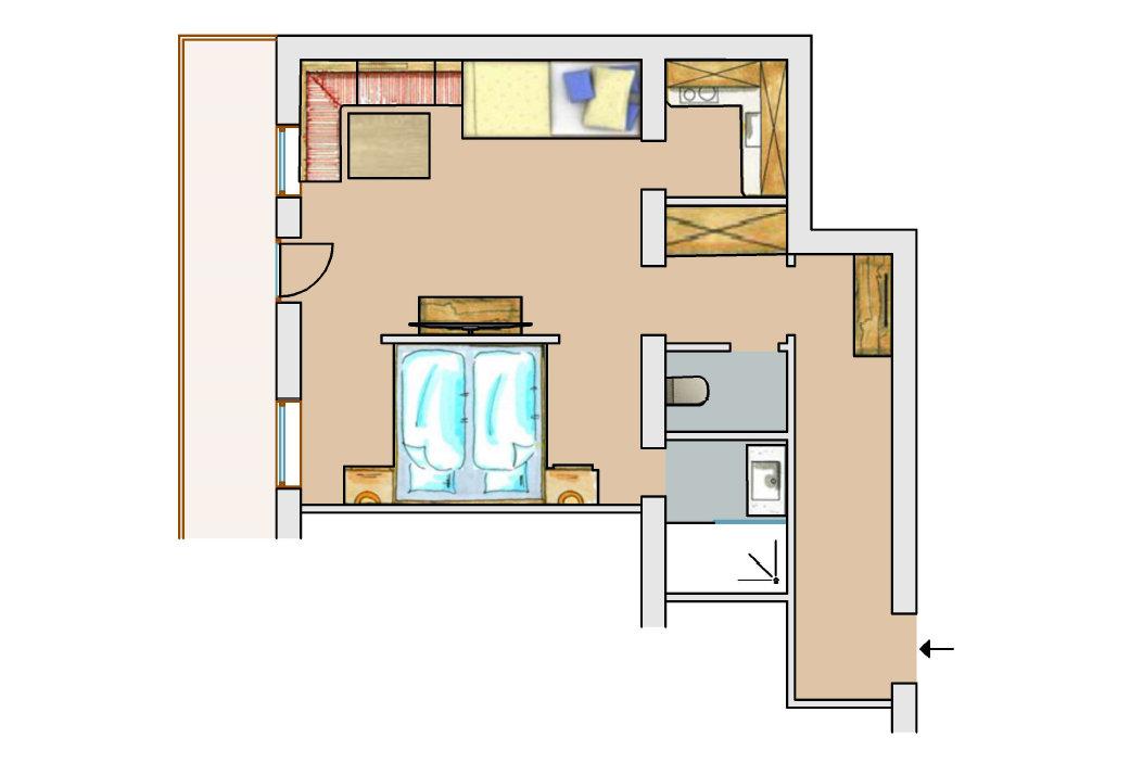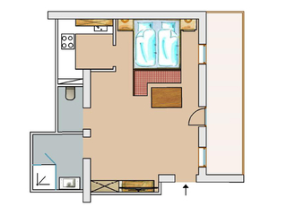 Wohnschlafzimmer (= Doppelbett und Sitzecke) Dusche und sep. WC , Küche (voll eingerichtet),Balkon Richt. Norden Radio,Safe ,Kabel-TV mit 8 Sky Programme ,kostenloses W-Lan ,Telefon