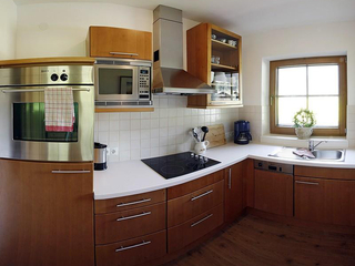Vorraum mit Garderobe, Wohnzimmer mit offenen Kamin und Flat-TV, Doppelzimmer mit Flat-TV , Doppelzimmer mit Dusche und WC und Flat-TV , Dreibettzimmer mit Flat-TV ,Küche , Badezimmer mit Dusche + WC, 1 extra WC, Die Küche ist voll ausgestattet mit