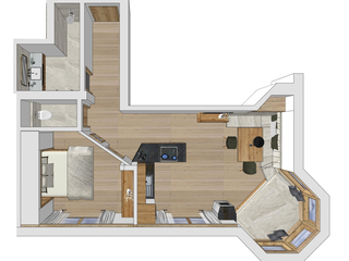 Großes Wohnschlafzimmer mit Flat-TV, Dusche, separates WC, kleine Küche Die Küche ist voll ausgestattet mit Kaffeemaschine, Geschirrspüler, Backofen, Wasserkocher ...Die Wohnung verfügen ohne Zusatzkosten über Safe, Radio, Duschgel & Seife, Bettwäsche,