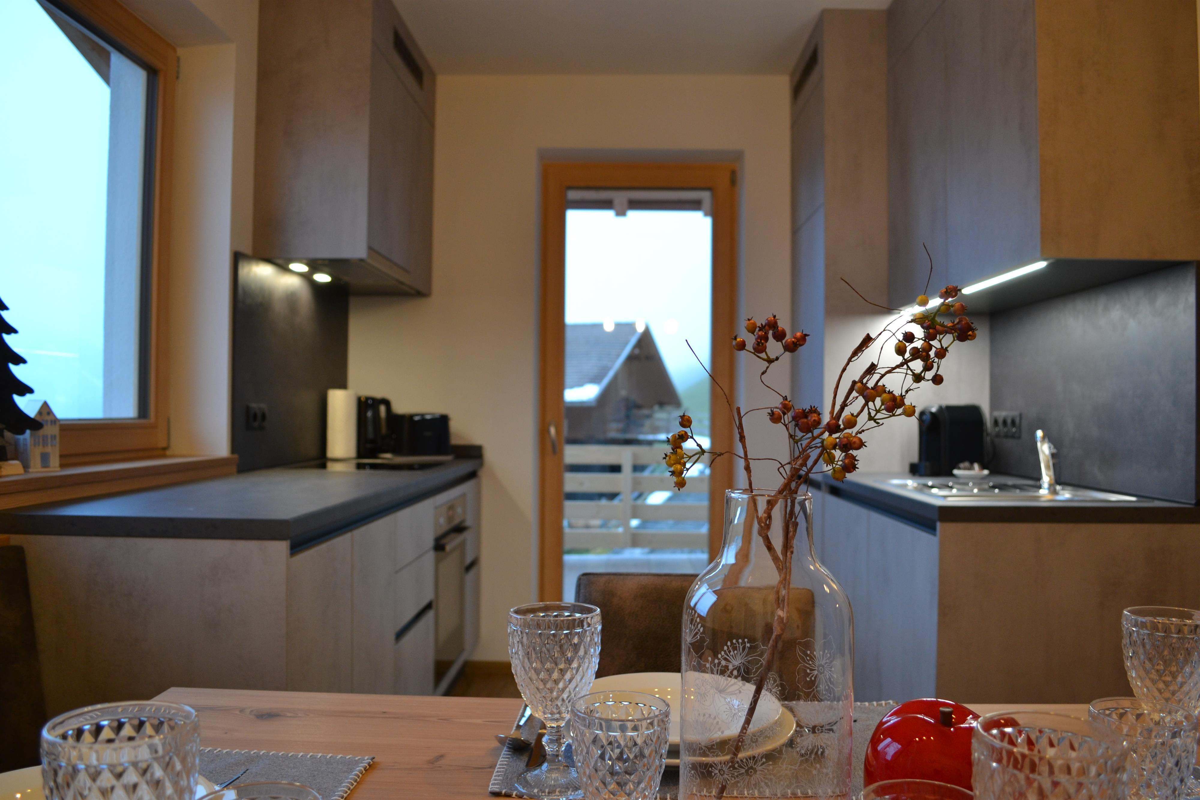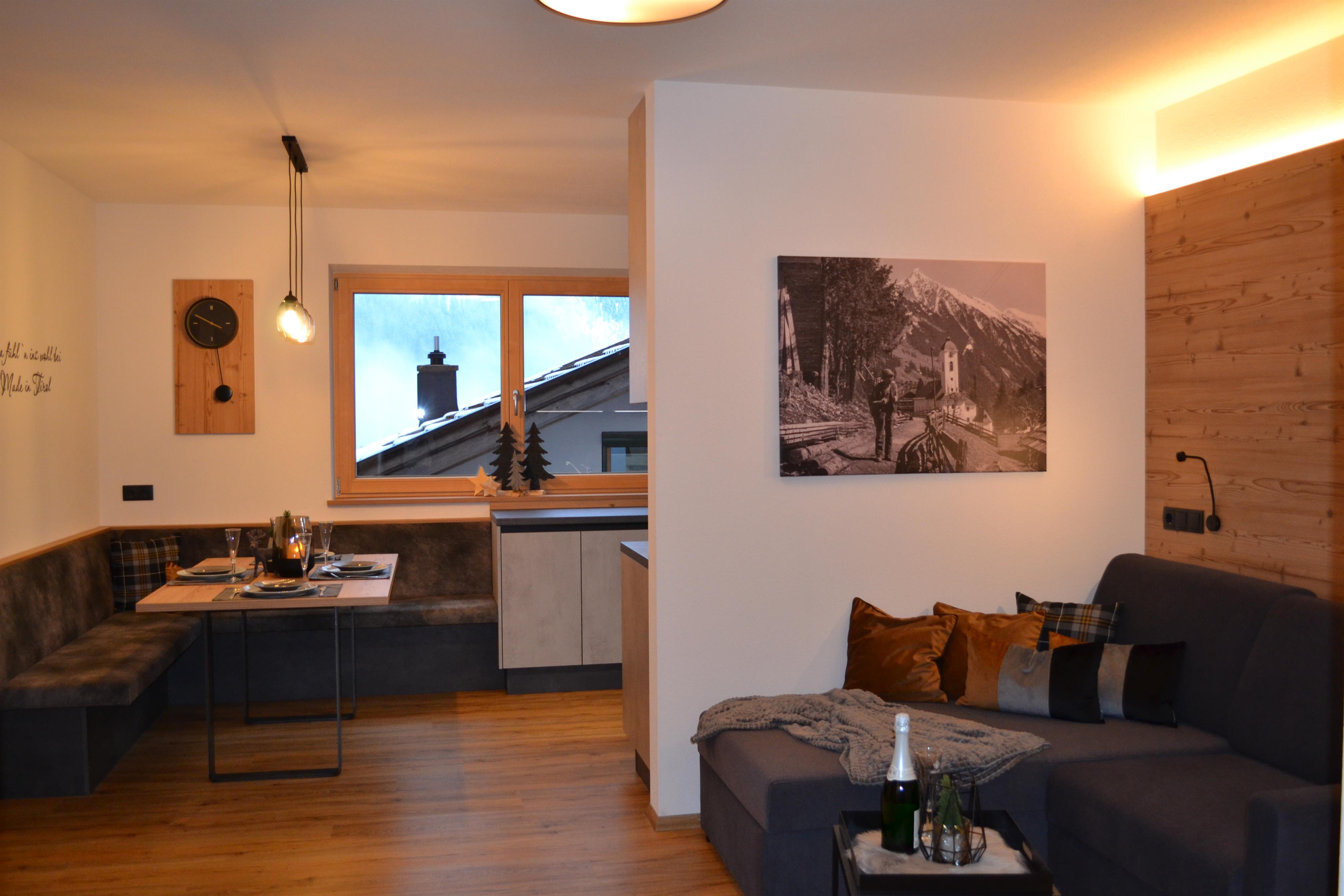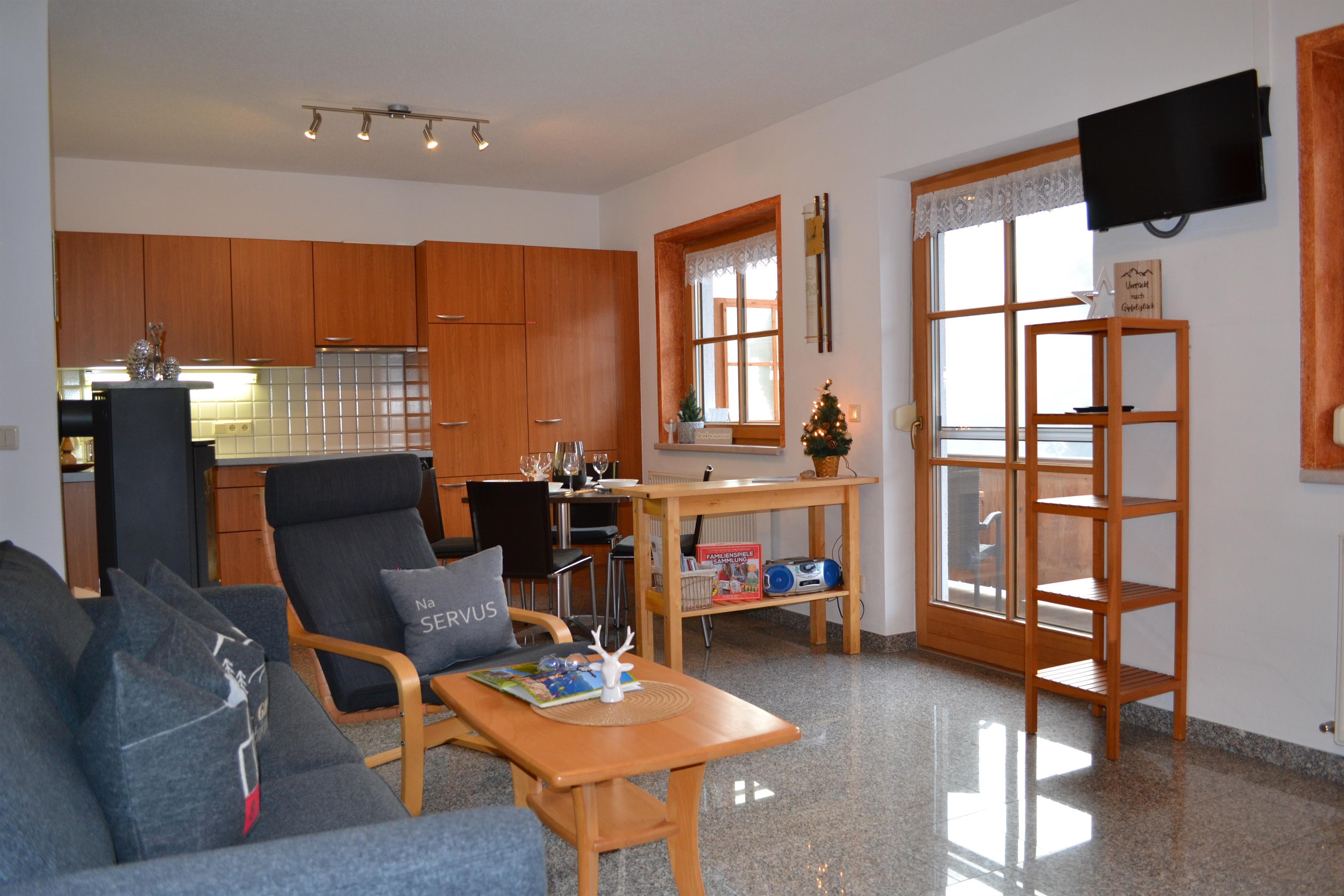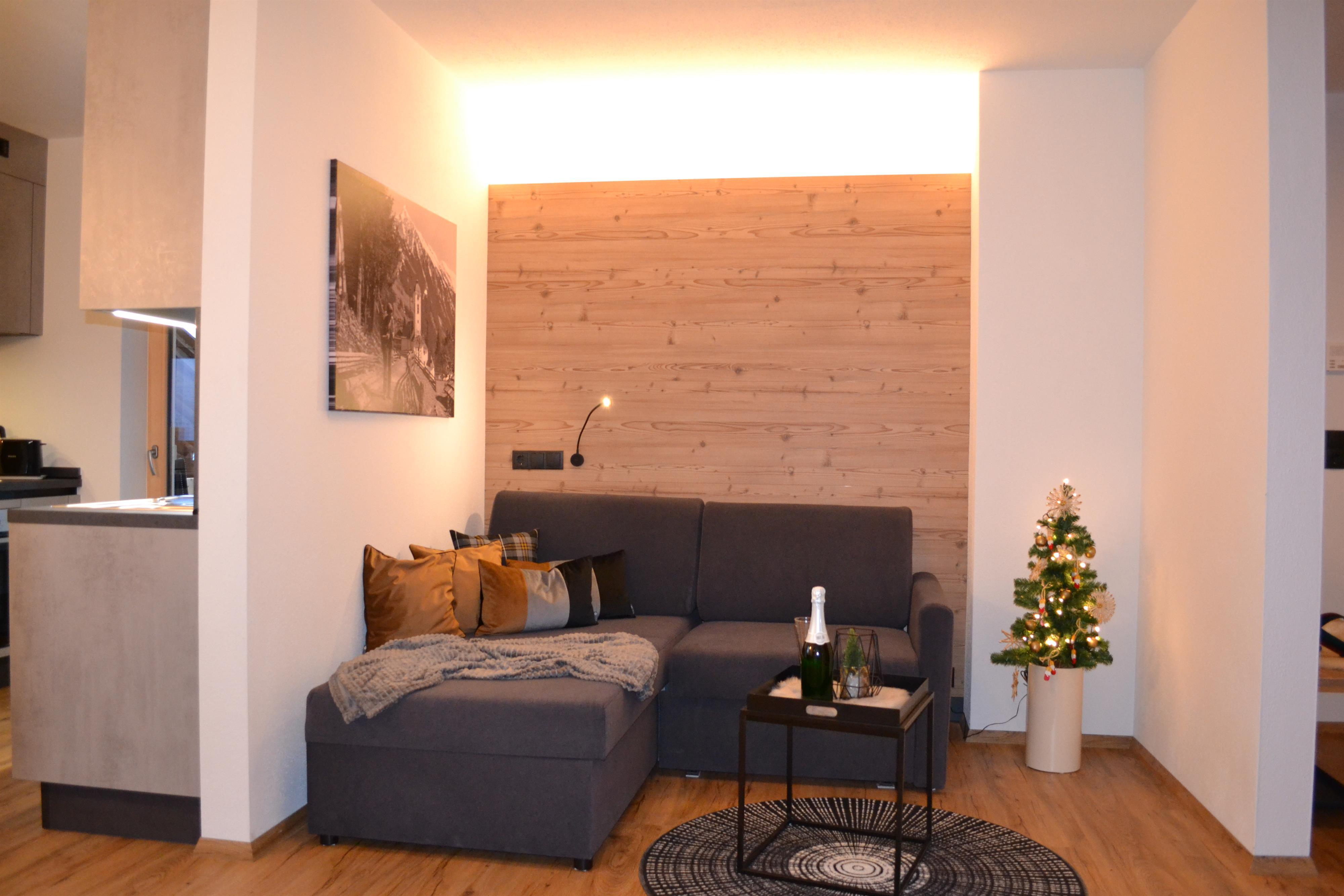Das Heimatverbundene spiegelt sich in dem großzügigen Appartement wieder. Im 2. Stock gelegen befinden sich Wohnraum mit WC und Garderobe, 2 Dusche WC Schlafzimmer mit Balkon und einer hochwertigen Schlafcouch. Die gemütliche Terrasse wird schnell zum