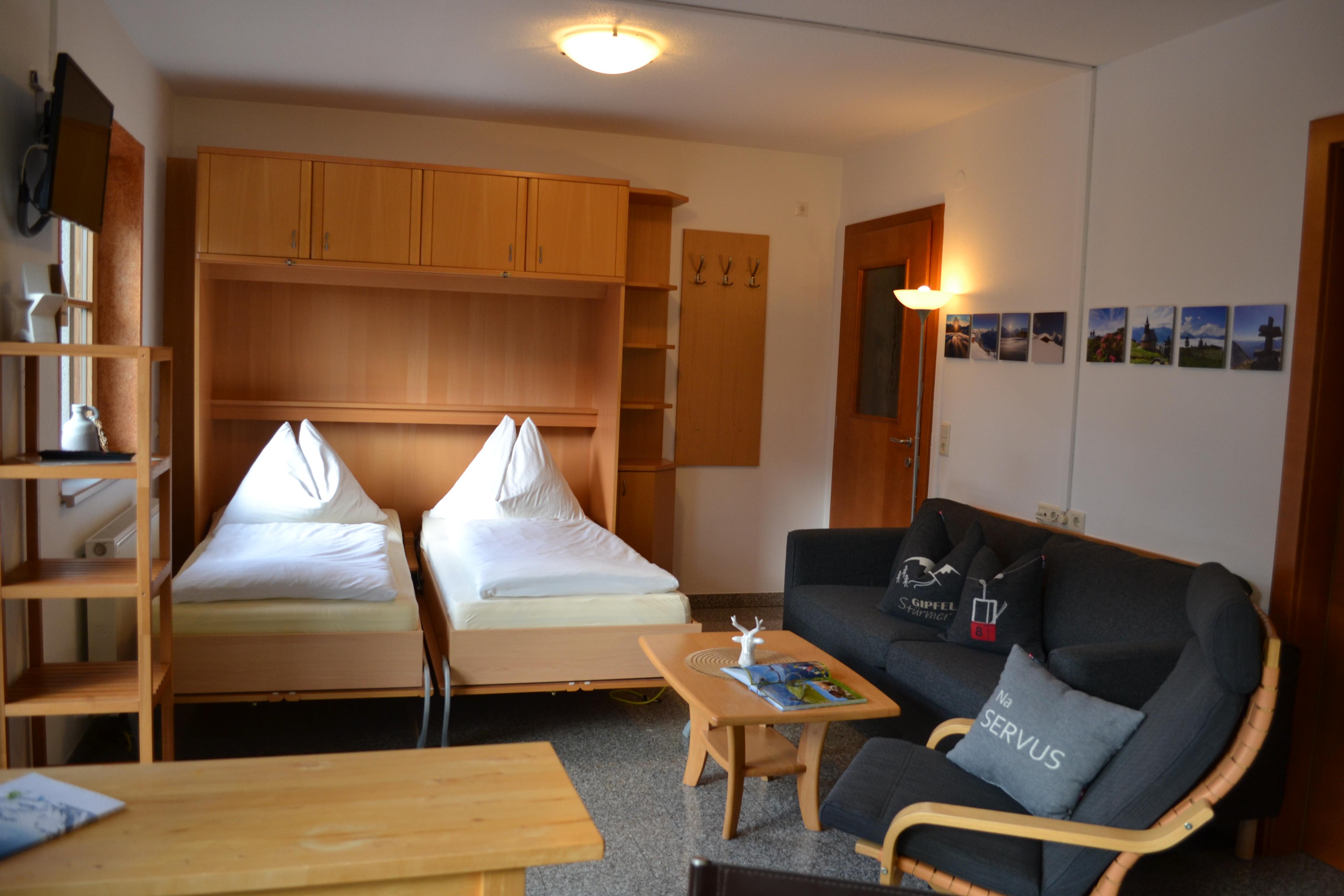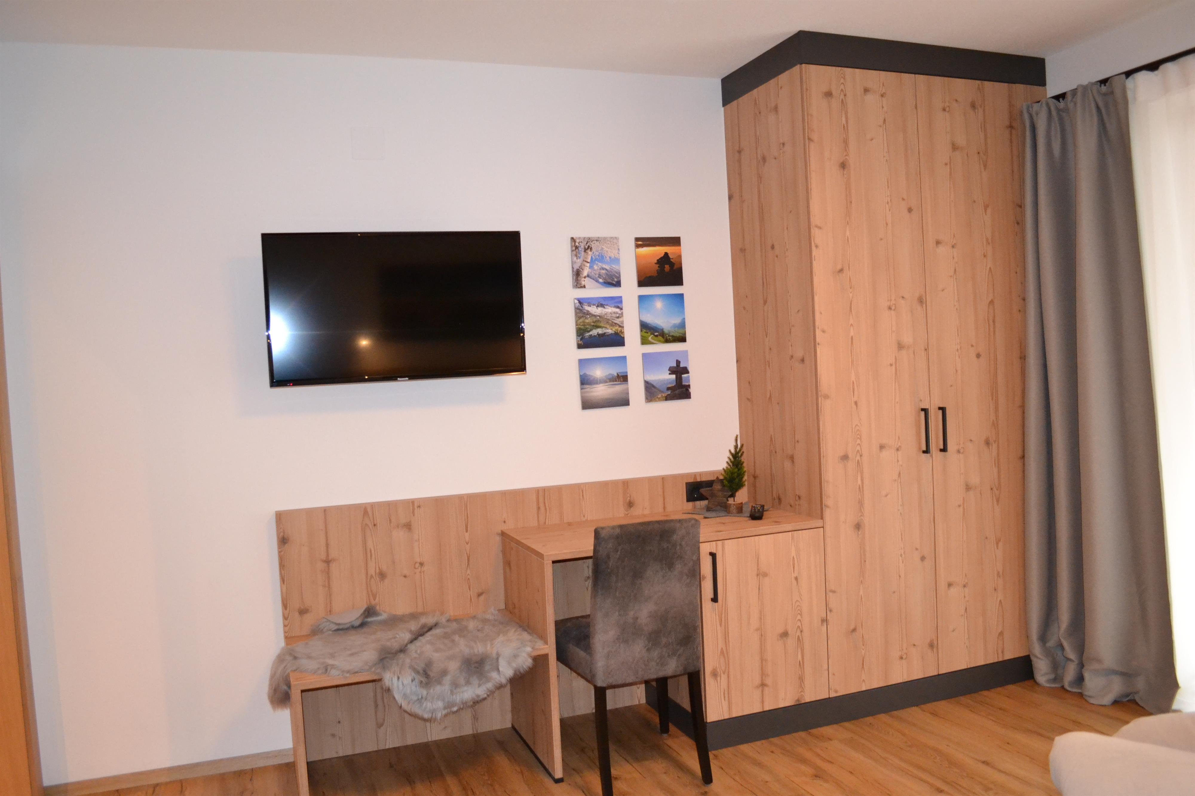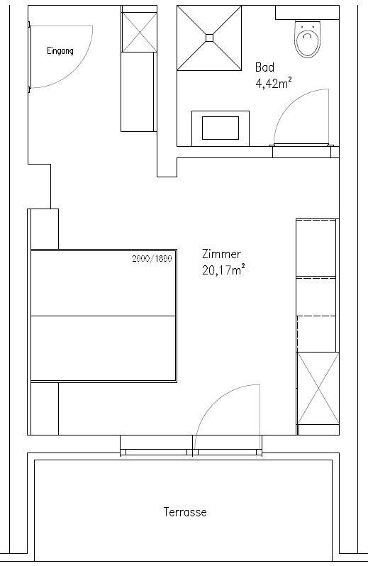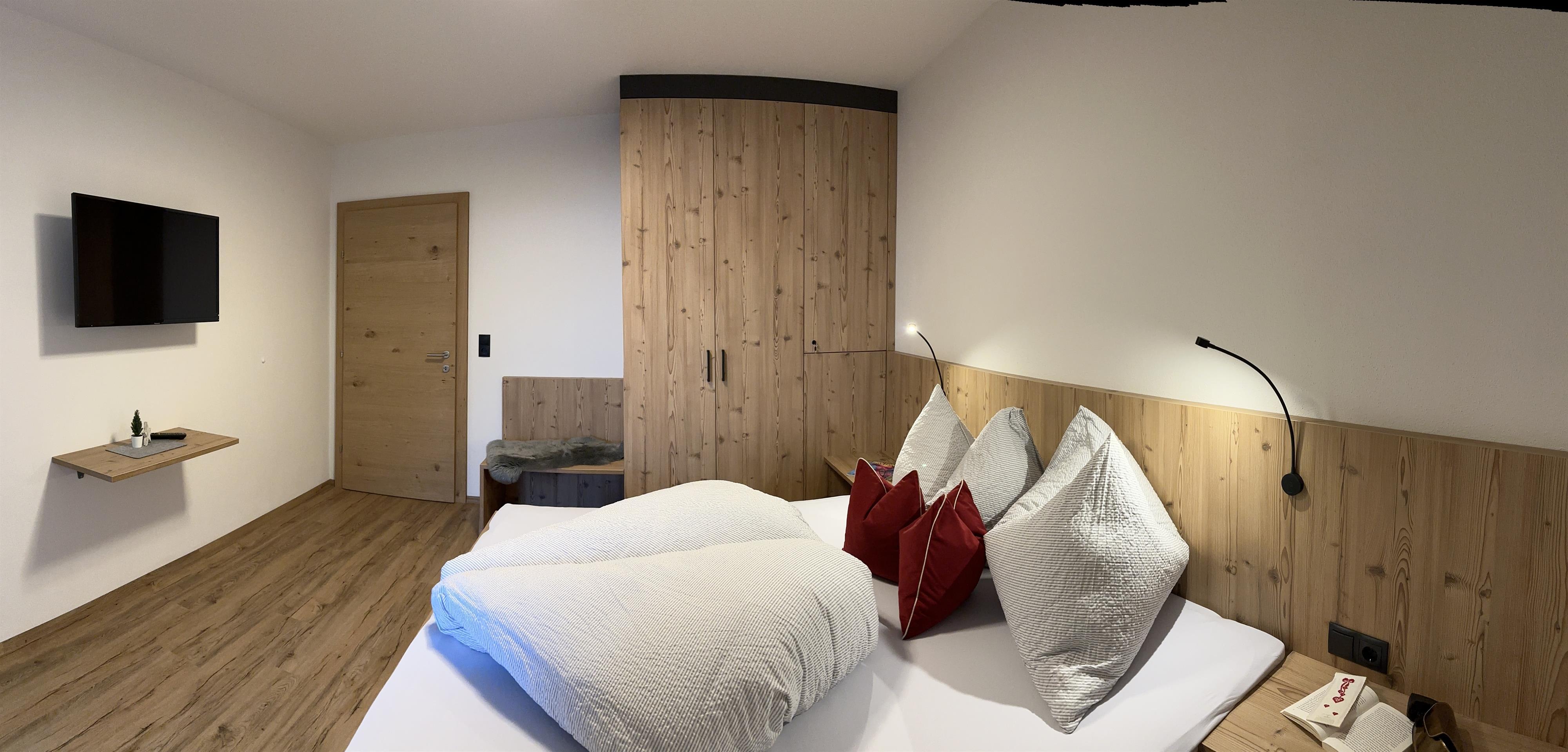 Das Zimmer ist ohne Verpflegung und hat keine Küchenausstattung, es kann individuell, je nach Verfügbarkeit zu den Appartements dazu gebucht werden. Es ist auch ideal für Paare die am liebsten alles unterwegs erledigen. Das geräumige Doppelzimmer befindet