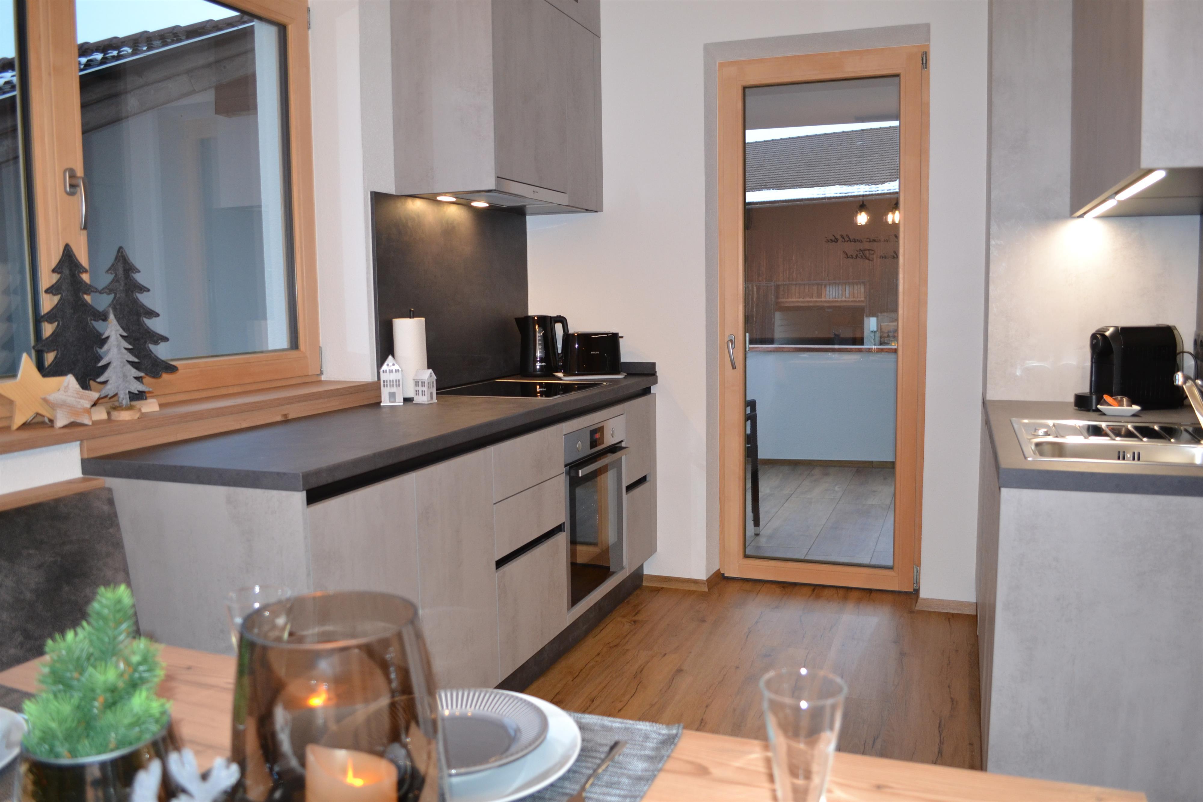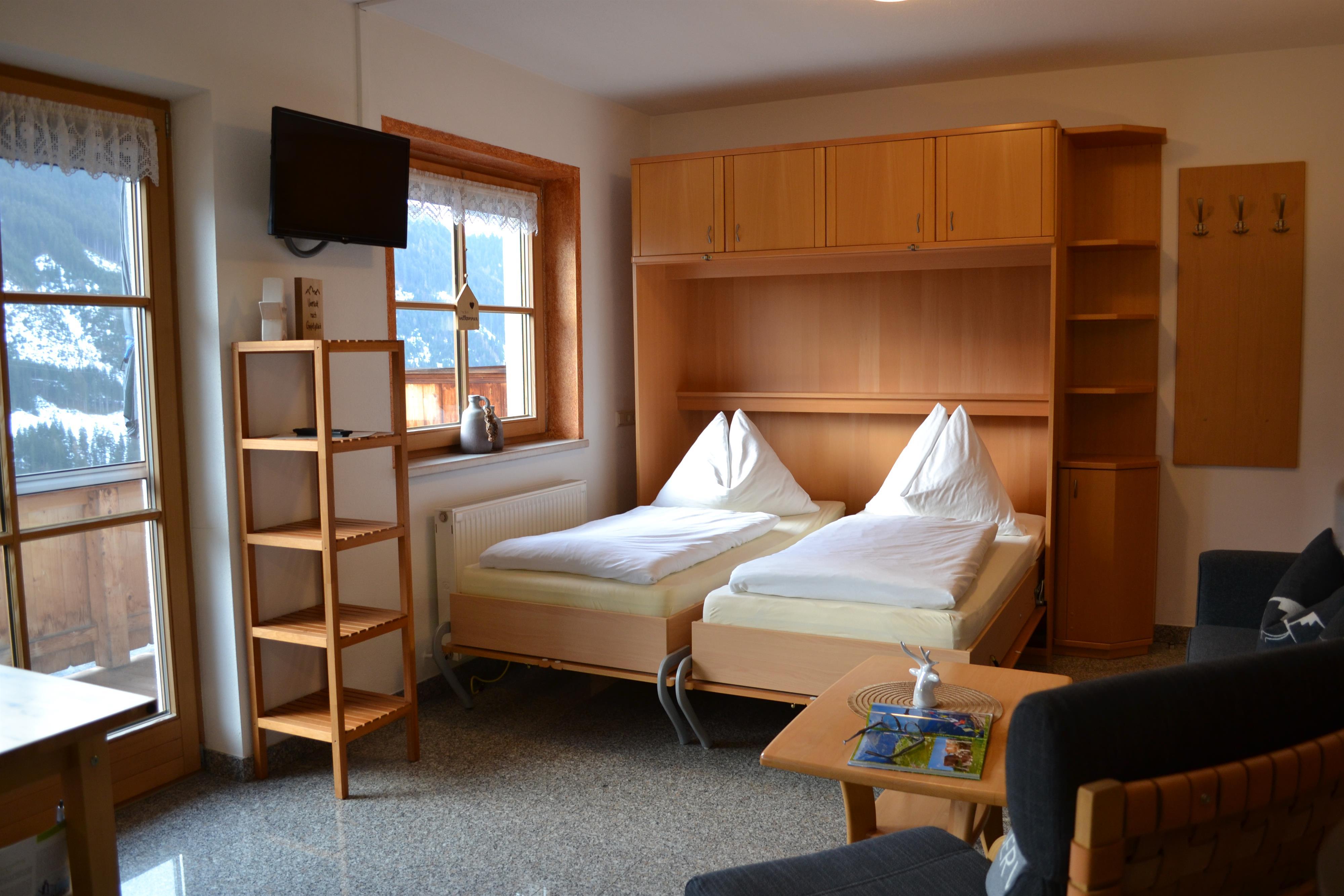 Das Appartement Bergwelt befindet sich in einem kleinen Häuschen neben unserem Privathaus. Es ist ca. 53 m² groß, hat ein Schlafzimmer, ein Badezimmer, einen Vorraum mit Garderobe, in der großzügigen Wohnküche ein Schrank-Doppelbett, ein Sofa und einen