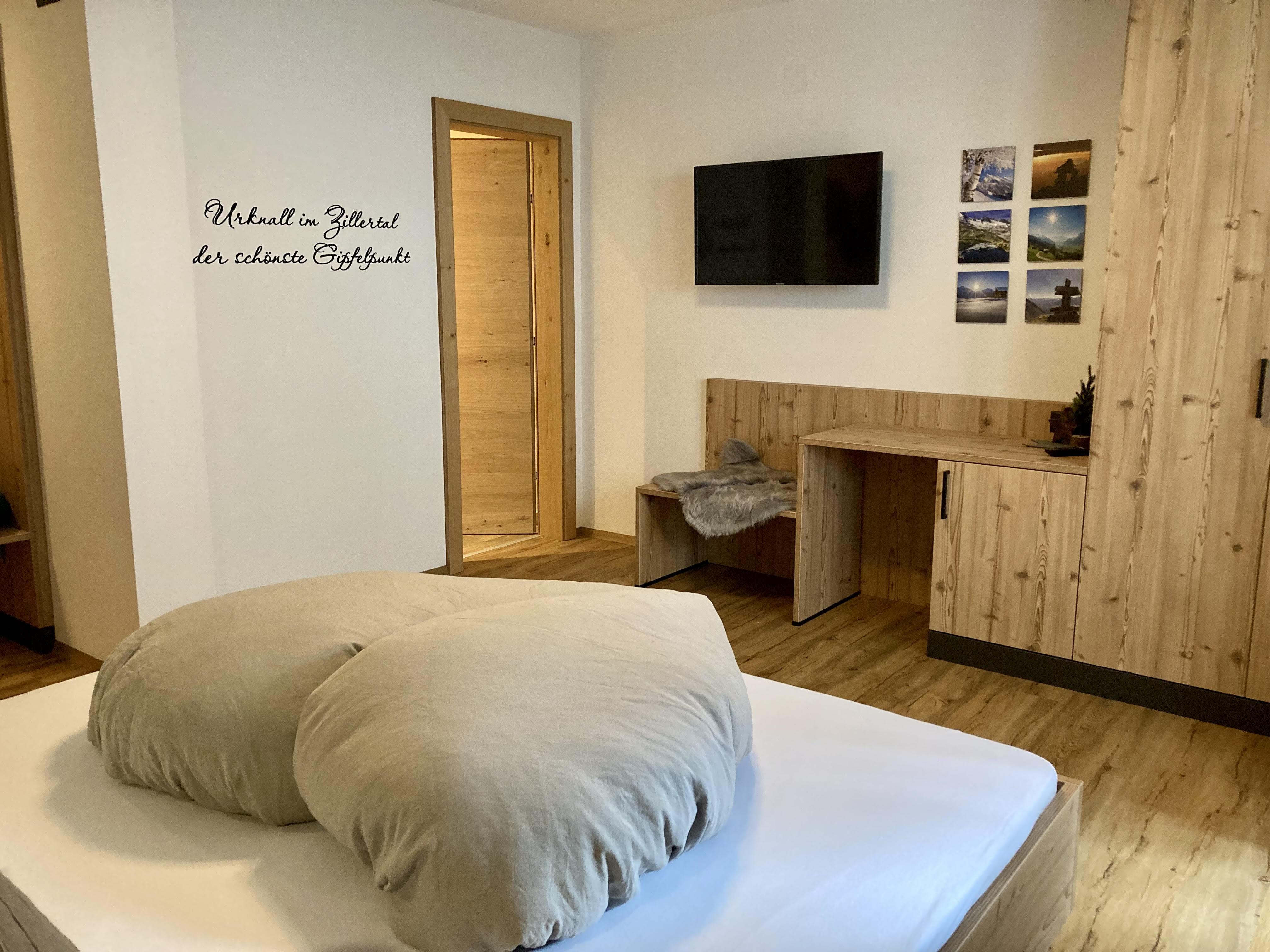 Spüre die perfekte Kombination aus unbeschwerter Lebenslust und magischen Bergmomenten, die zum Wohlfühlen einladen. Der Hausherr, ein leidenschaftlicher Musikant erfüllte sich mit seiner Familie in eigener Handarbeit, Hingabe und zugegeben manchmal auch mit verrückten Ideen den Traum vom entschleunigten ruhiggelegenen Apartmenthaus in Brandberg nähe Mayrhofen im Zillertal. Eingehüllt in atemberaubender Bergwelt befinden sich zwei stilvoll luxuriös ausgestattete Appartements, die traditionelle Einrichtung mit viel Holz lässt Tiroler Gemütlichkeit verspüren. Zum Träumen, Relaxen und auf ein Rendezvous mit den Zillertaler Bergen laden die großzügigen Terrassen und Balkone ein.