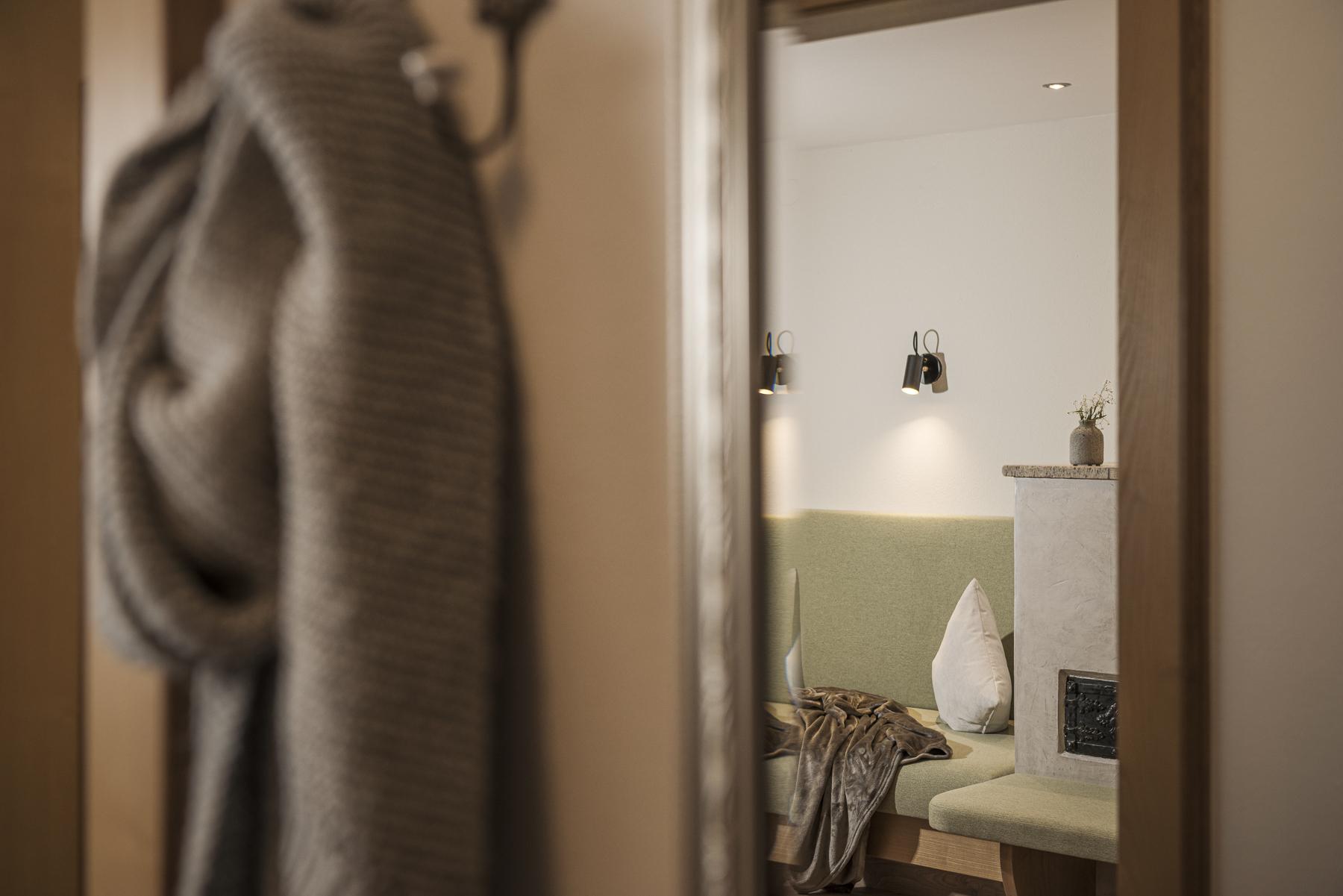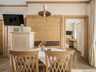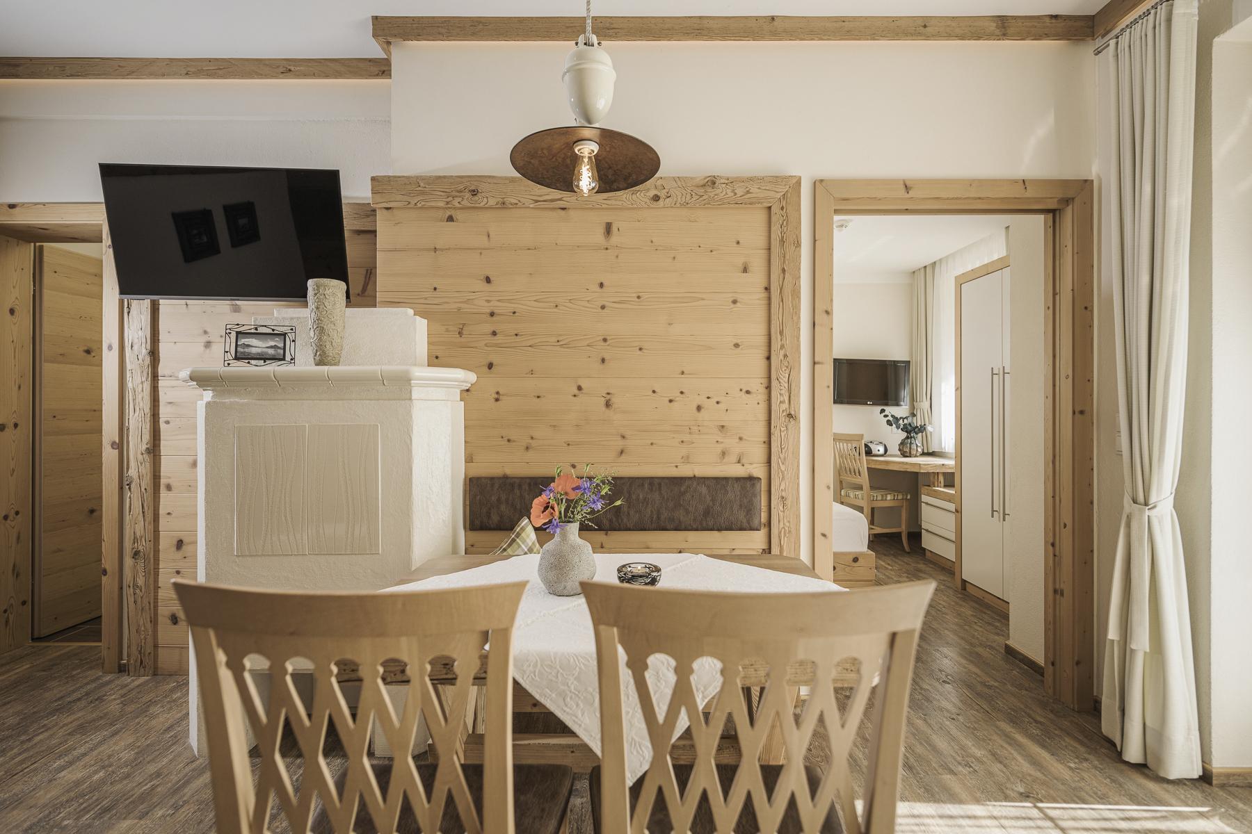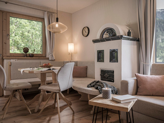 Appartement: Orchidee für 4-6 Pers. (ca. 78m²). 2 Schlafzimmer, 1 Dusche/WC sowie 1 Dusche und 1 WC separat, Wohnzimmer mit Kachelofen, Sitzecke und ausziehbares Liegesofa (Schlafgelegenheit für 2-3 Personen), Küche komplett eingerichtet (Mikrogrill,
