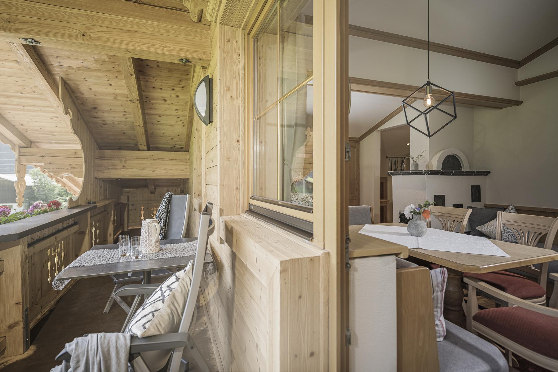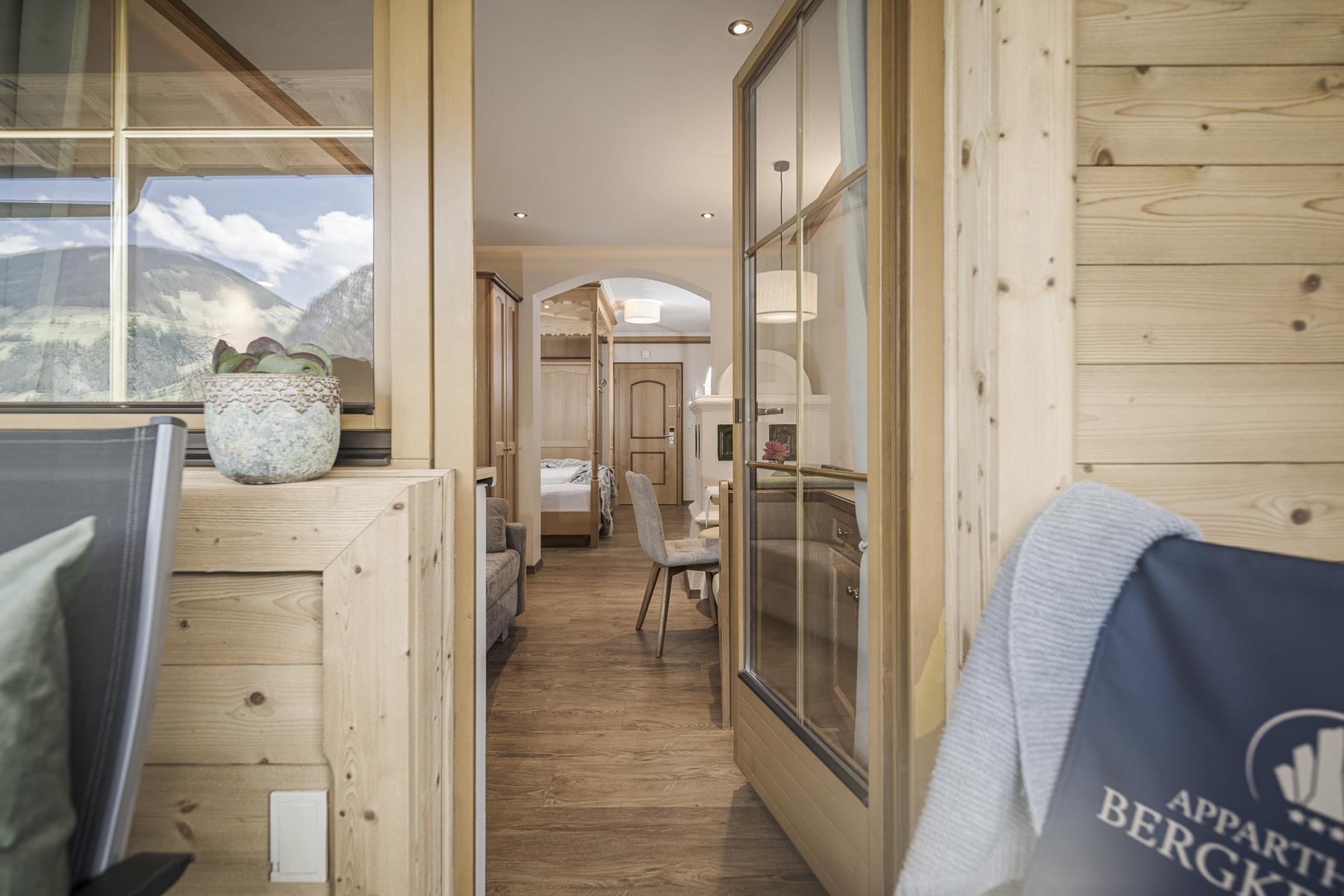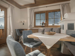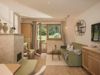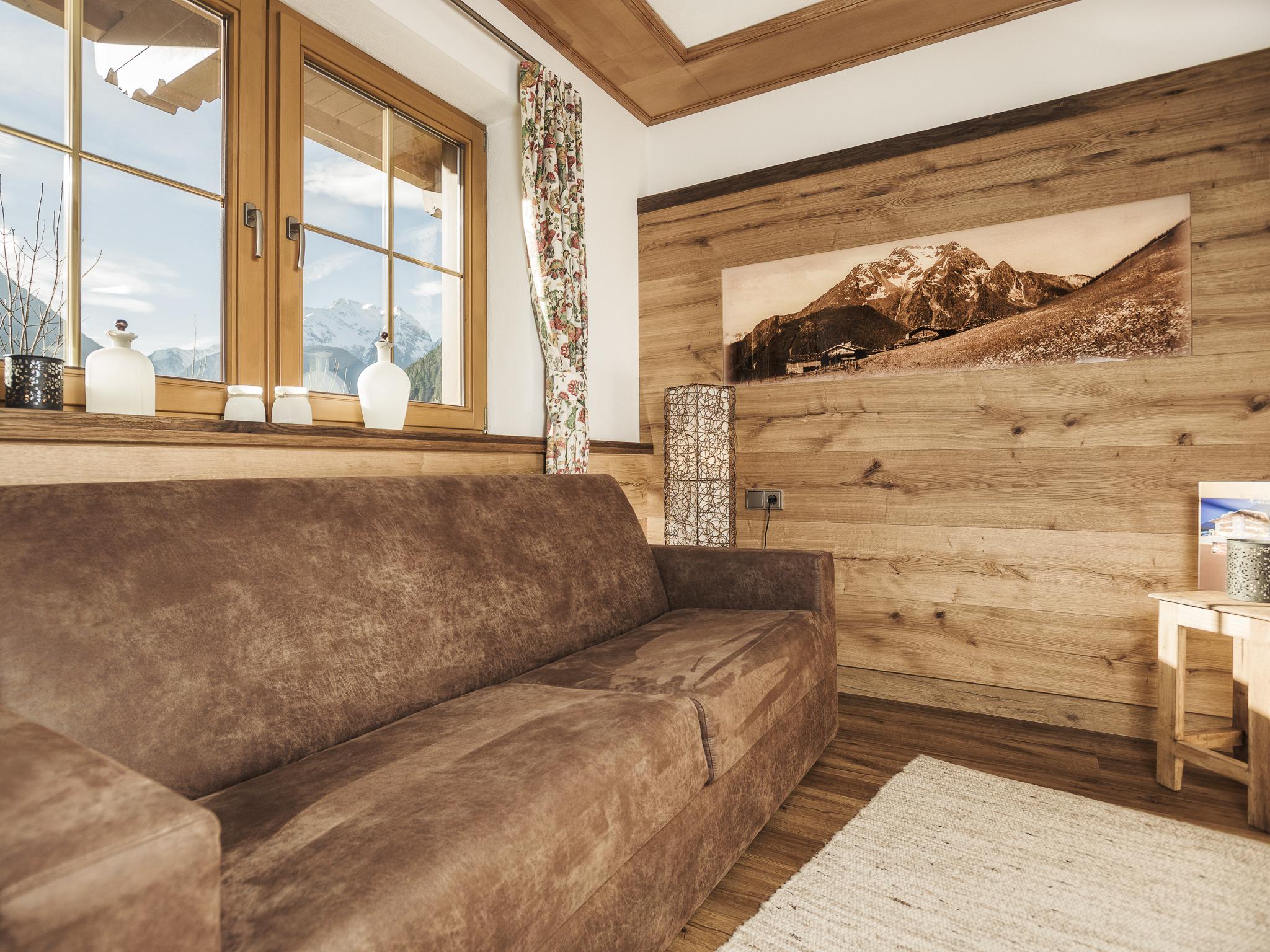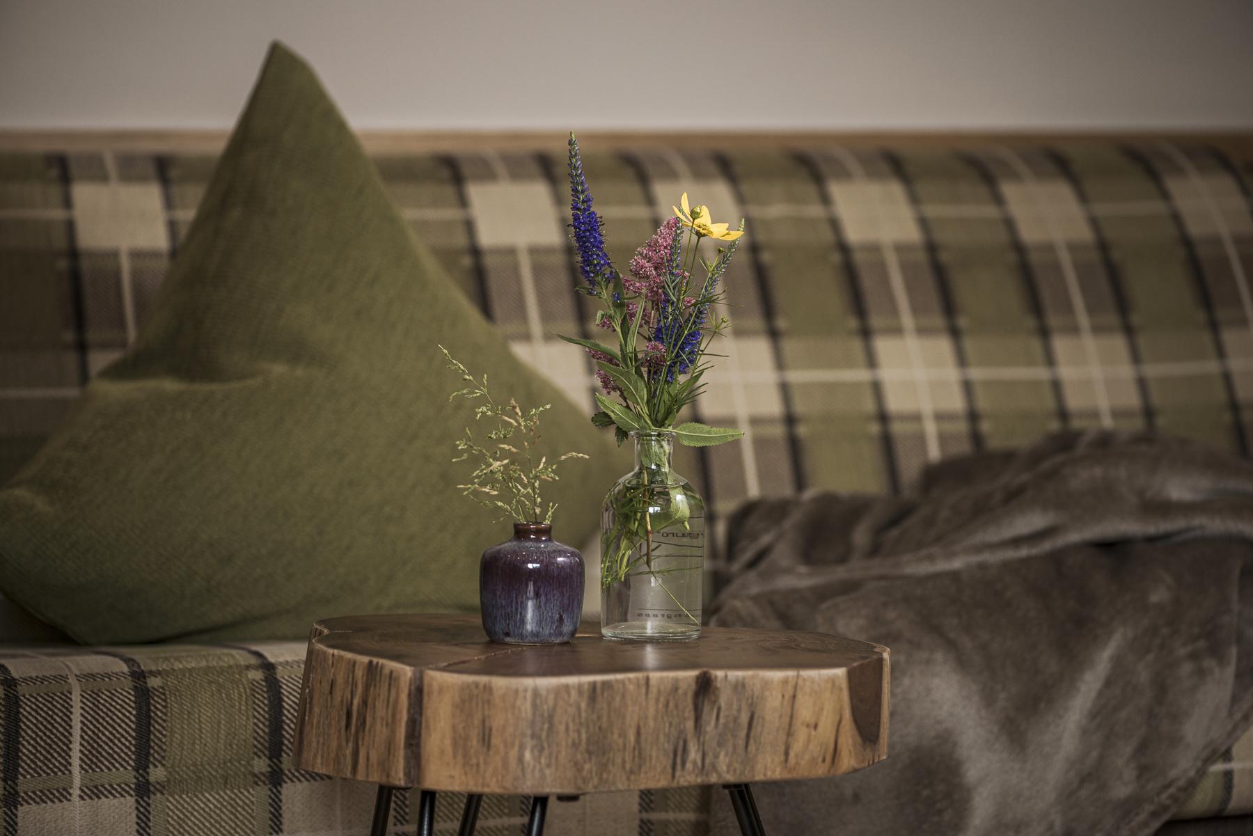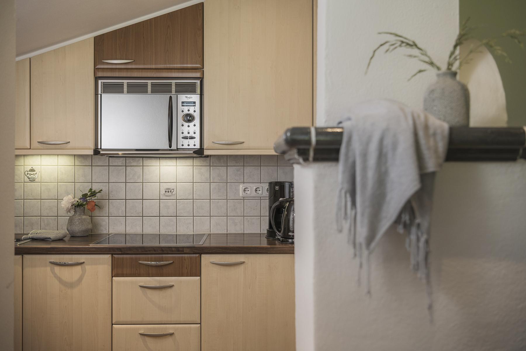 Appartement: Alpenrose und Vergissmeinnicht: für 2-4 Pers. (ca. 55m²): Schlafzimmer, Wohnzimmer mit Kachelofen, Sitzecke und ausziehbares Liegesofa, Küche komplett eingerichtet (Mikrogrill, Geschirrspüler ...), Bad oder Dusche, WC separat, Vorraum mit