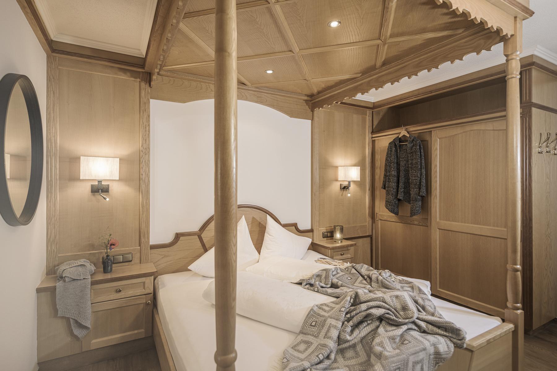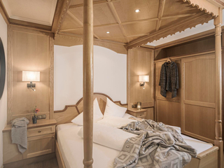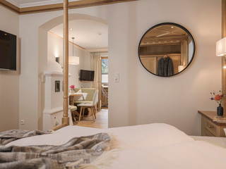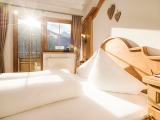 Appartement Himmelschlüssel: für 2 Pers. (ca. 38m²). Schlafzimmer mit Himmelbett, Wohnbereich mit Kachelofen, Sitzecke und Sofa, Küche komplett eingerichtet (Mikrogrill, Geschirrspüler...), Dusche/WC, Balkon Richtung Westen, SAT-TV, Radio, Telefon und