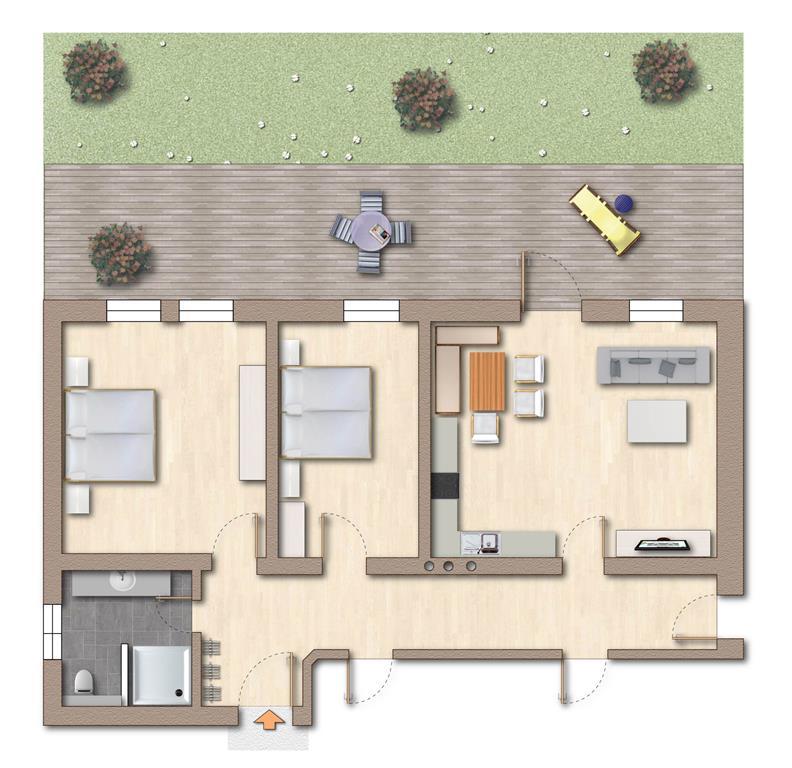 Appartement/Fewo, Dusche, WC, 2 Schlafräume