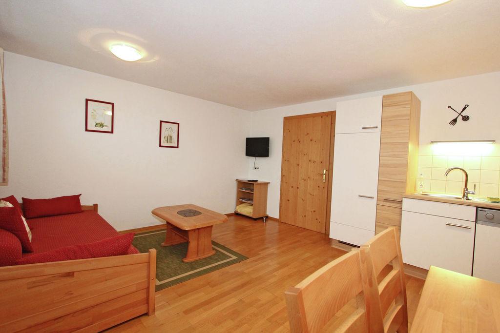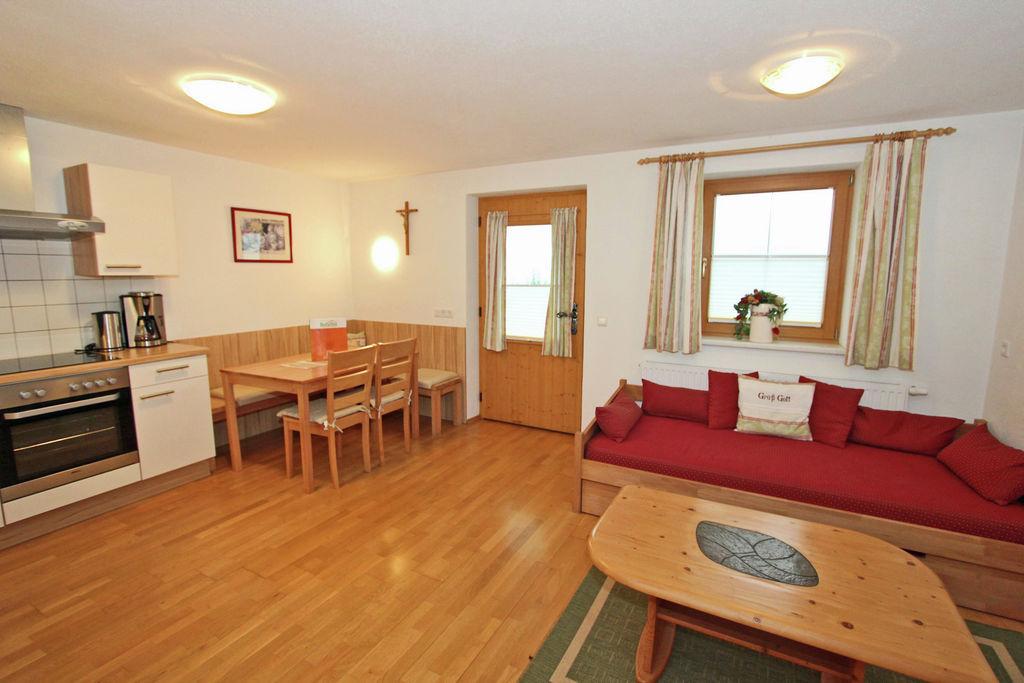 Unser Apartment mit großzügigem Garten liegt im Untergeschoß des Hauses und verfügt über 2 neu möblierte Doppelzimmer, ein Bad mit Dusche / WC und eine geräumige Wohnküche mit Schlafgelegenheit. Der Garten mit super Blick ins Tal lädt zu entspannenden
