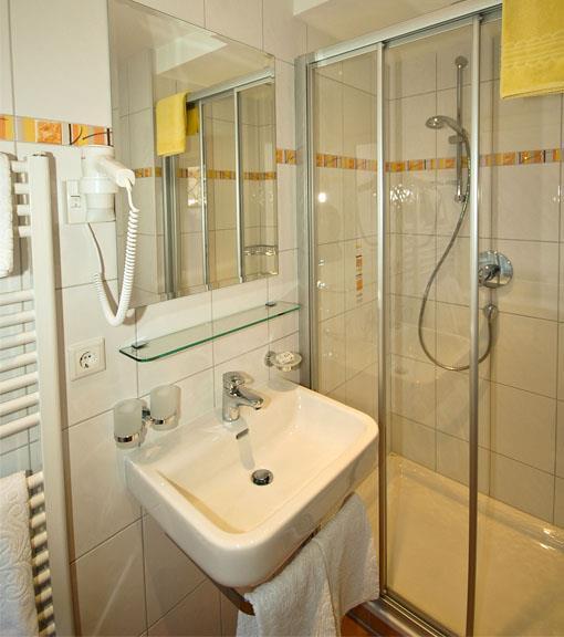 Einbettzimmer mit gemütlichem Couchsessel, Bettgröße 120x200 cm, Badezimmer mit Dusche/WC, Haarfön, TV, Radio, Telefon, Safe, Kühlschrank, Balkon mit Blick zum Garten und herrlicher Bergsicht. Verpflegung: Frühstück vom Buffet mit regionalen