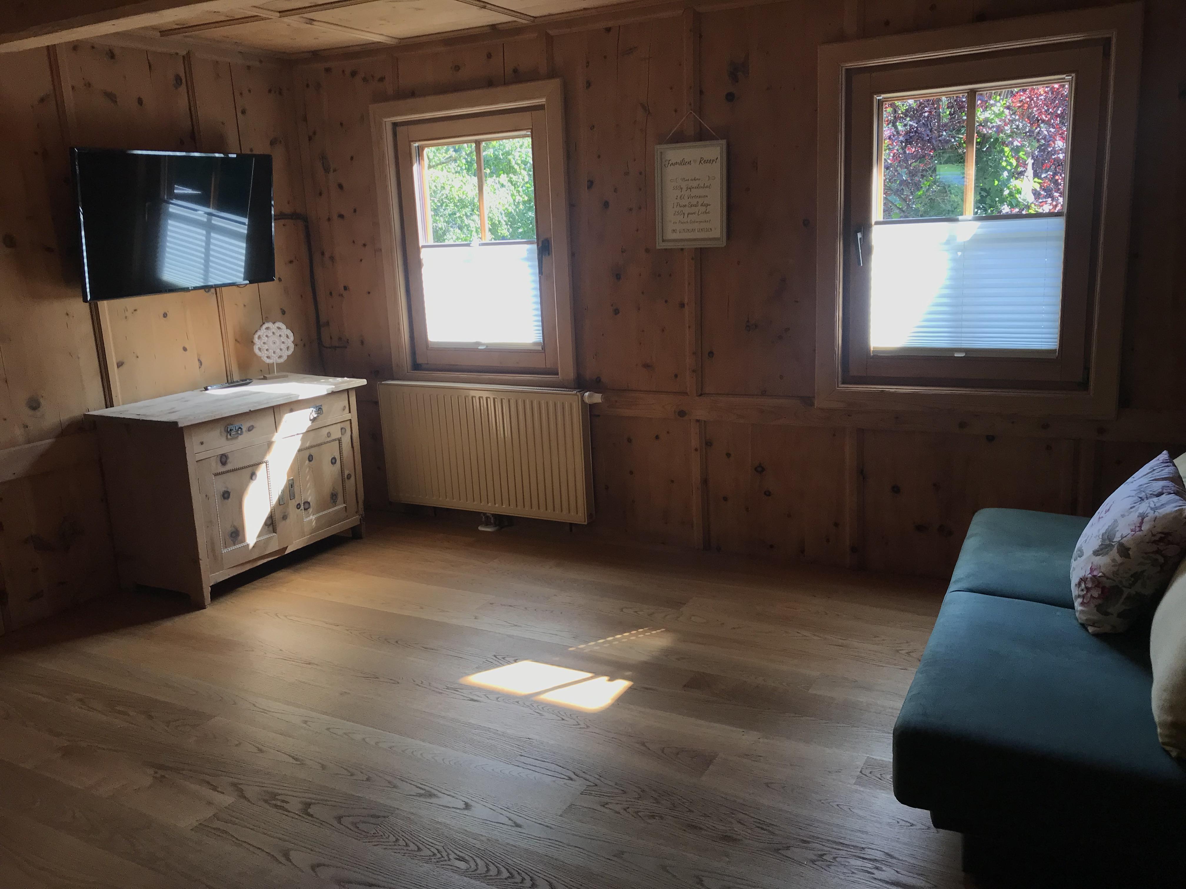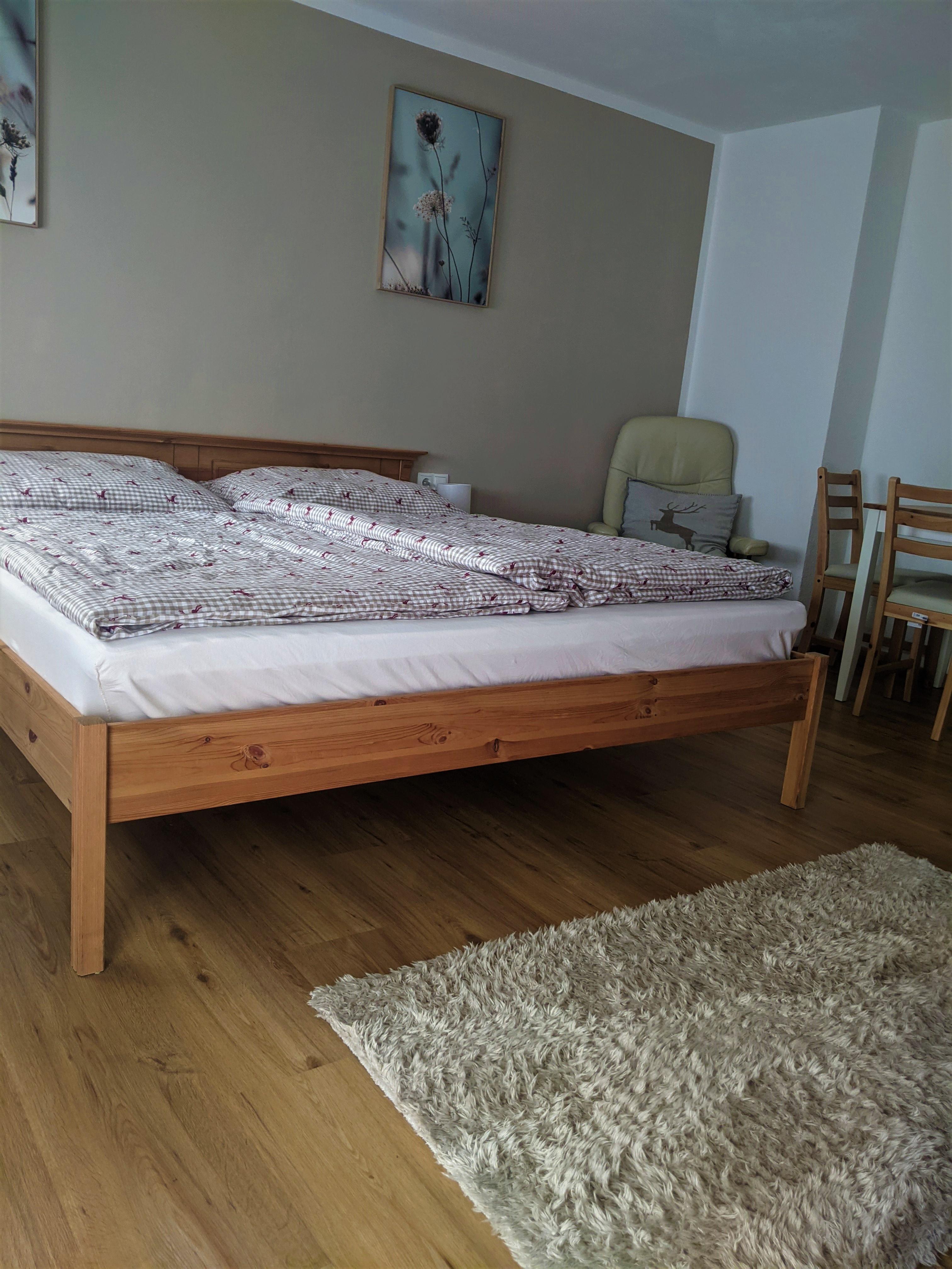 Das Appartement (~60m2) verfügt über ein Schlafzimmer mit einem Doppelbett und einem Zustellbett. In der Wohnung ist ein Badezimmer mit Dusche, WC, Badewanne und Föhn vorhanden. Die Küche ist vollständig ausgestattet und bietet einen gemütlichen
