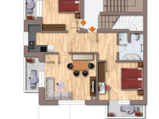 Appartement/Fewo 1, 2x Dusche, 2WC, 2 Schlafräume
