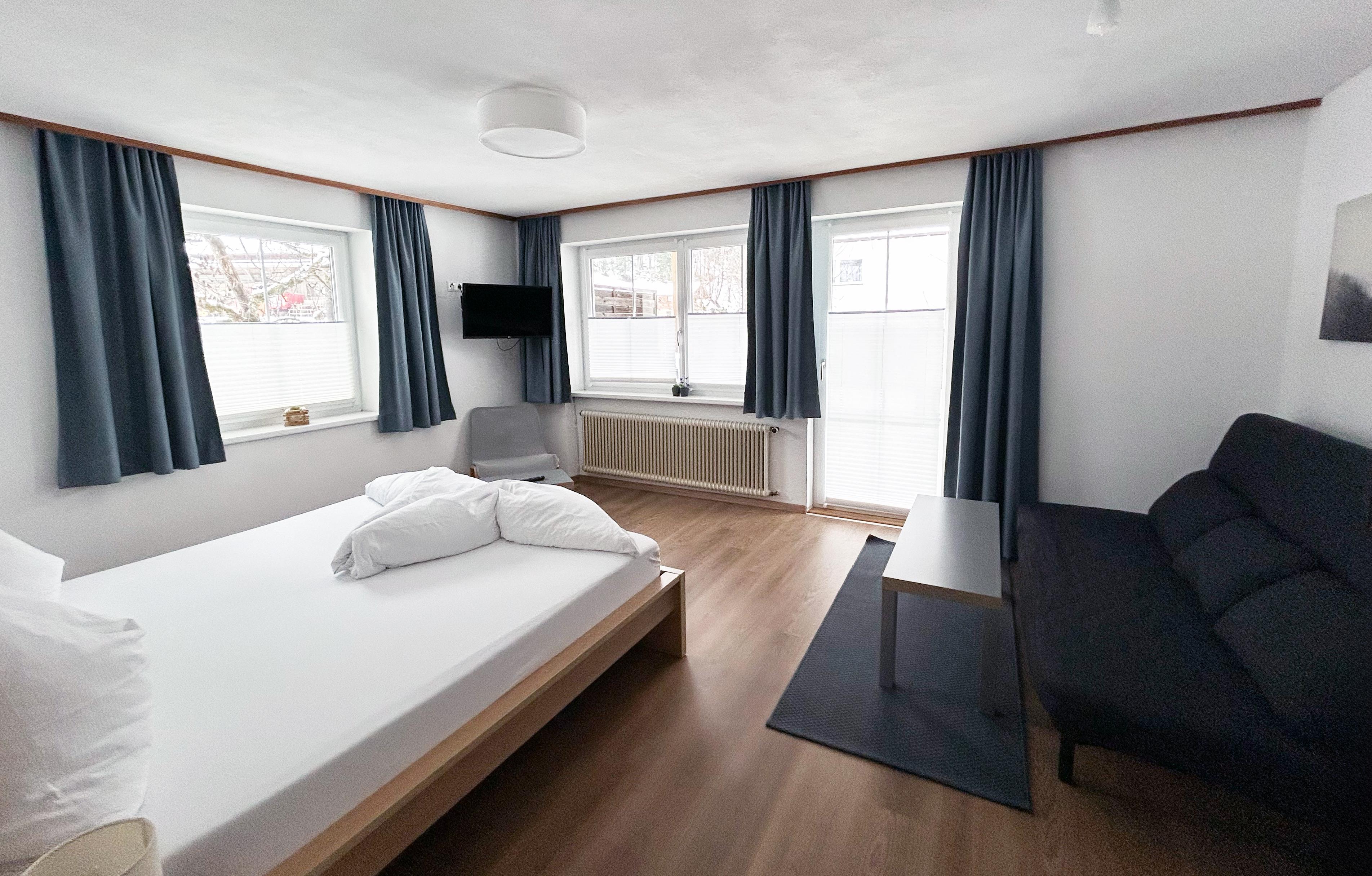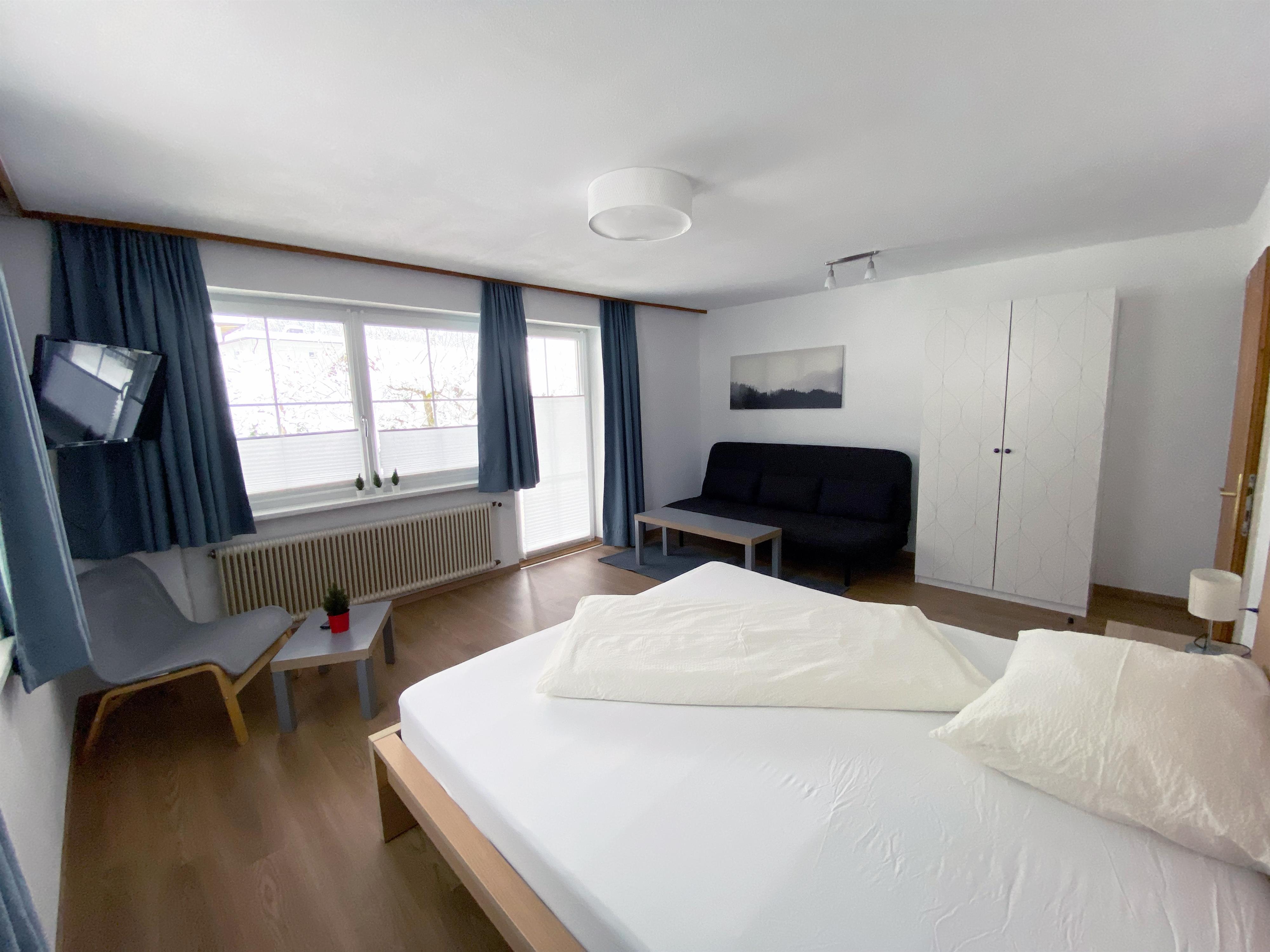 Doppelzimmer 1: zusätzliche Schlafcouch, TV, Ausgang Terrasse