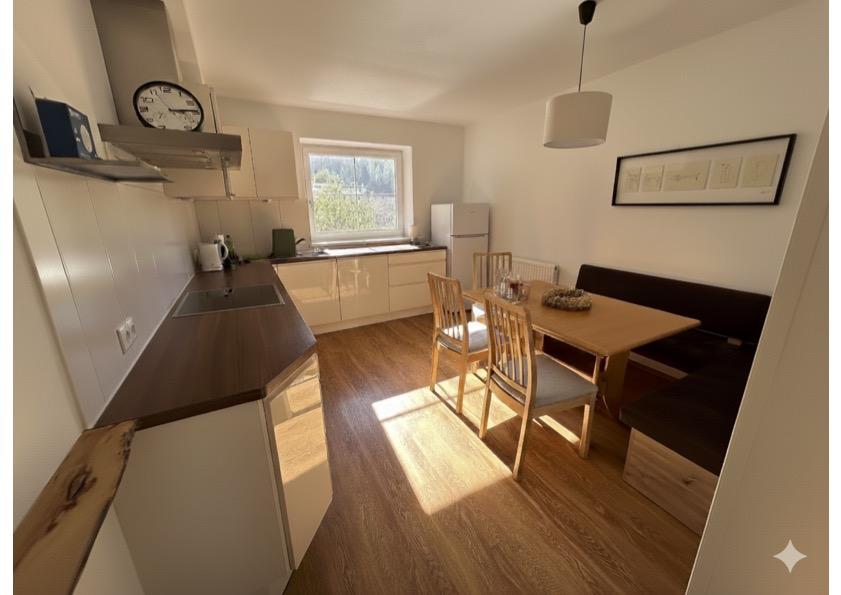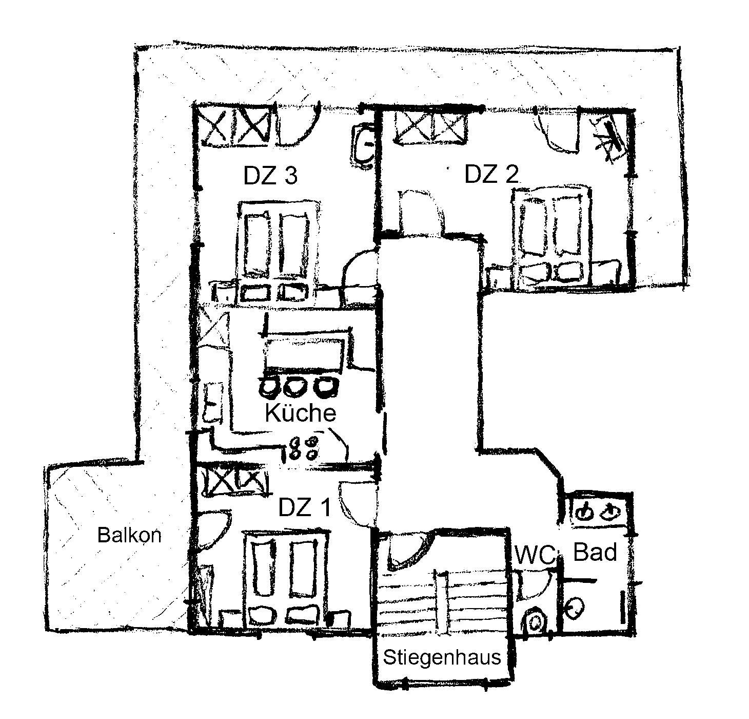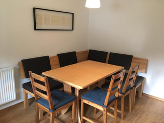 Das Appartement Schneeflöckchen 2 ist eine rund 80 Quadratmeter große Wohnung im 1. Stock unseres Hauses, bestehend aus einer Wohnküche und drei Schlafzimmern mit Doppelbett. Das Badezimmer hat einen Doppelwaschtisch und eine Dusche, das WC ist räumlich getrennt.