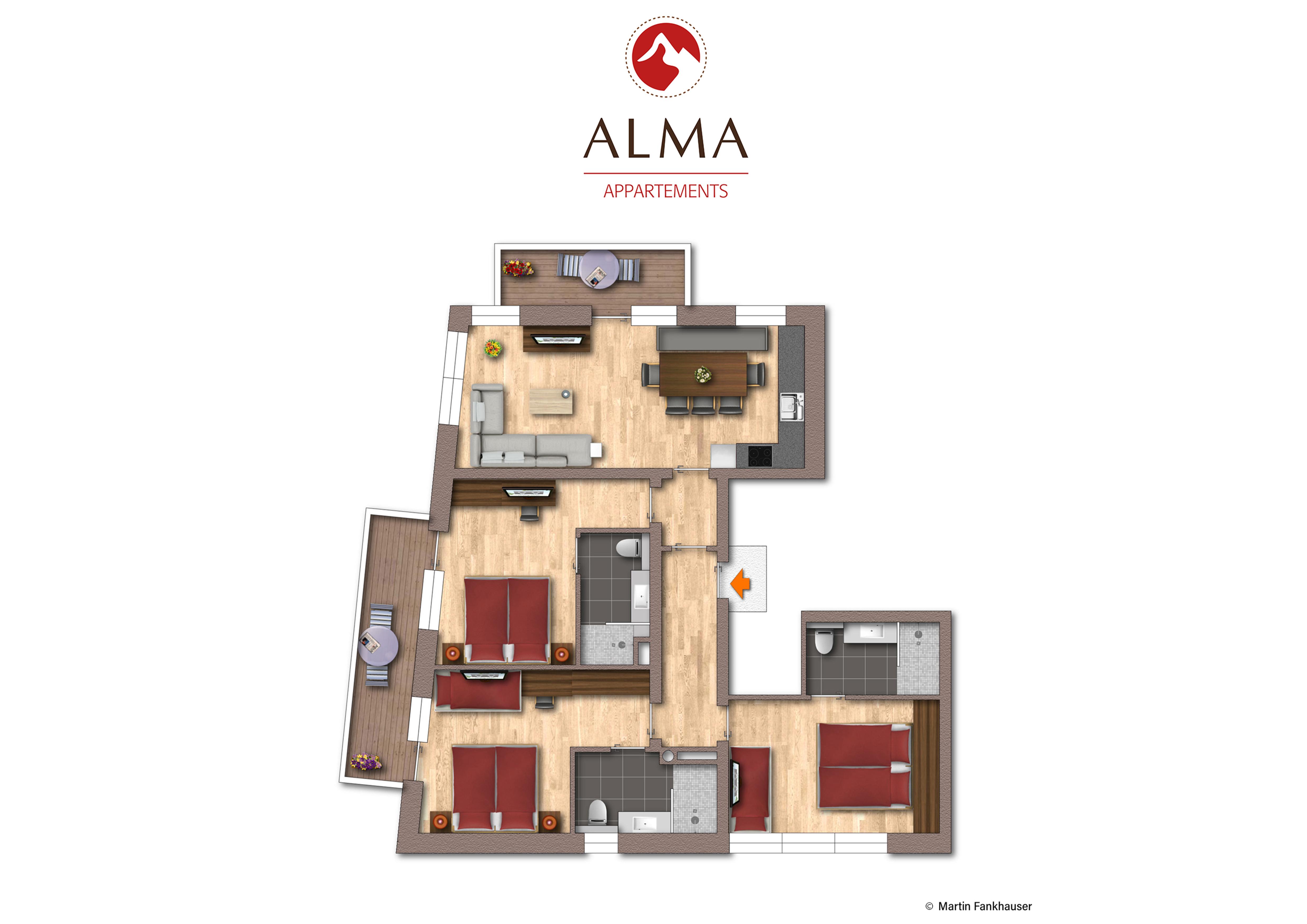 Inmitten des pulsierenden Lebens von Mayrhofen finden Sie hier an 365 Tagen im Jahr einen Rückzugsort, der seinesgleichen sucht. Mit einem Extra an Service und einem Gastgeber, der sein Handwerk nicht nur versteht, sondern leidenschaftlich lebt, ganz nach dem Motto “Happiness is our business”. Keine Urlaubsunterkunft wie jeder andere – das sind unsere ALMA Appartements.