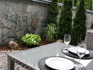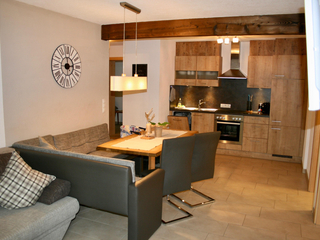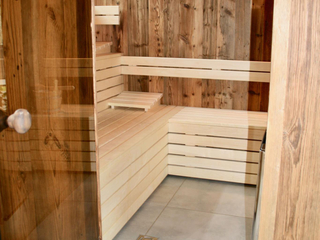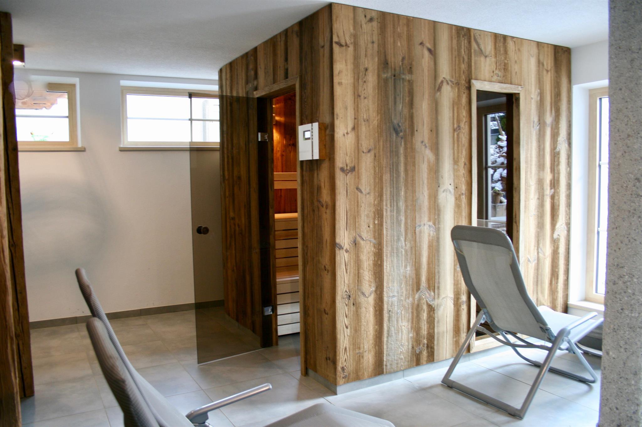 ca. 65m², 2 seperate Schlafzimmer, 1 DU/WC, 1 vollausgestattete Wohnküche mit komfortabler Doppelcouch und direktem Zugang zur ruhigen Terrasse hinter dem Haus und Sauna mit Sonnenterrasse
