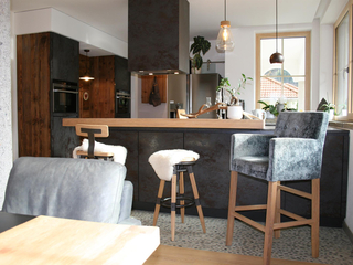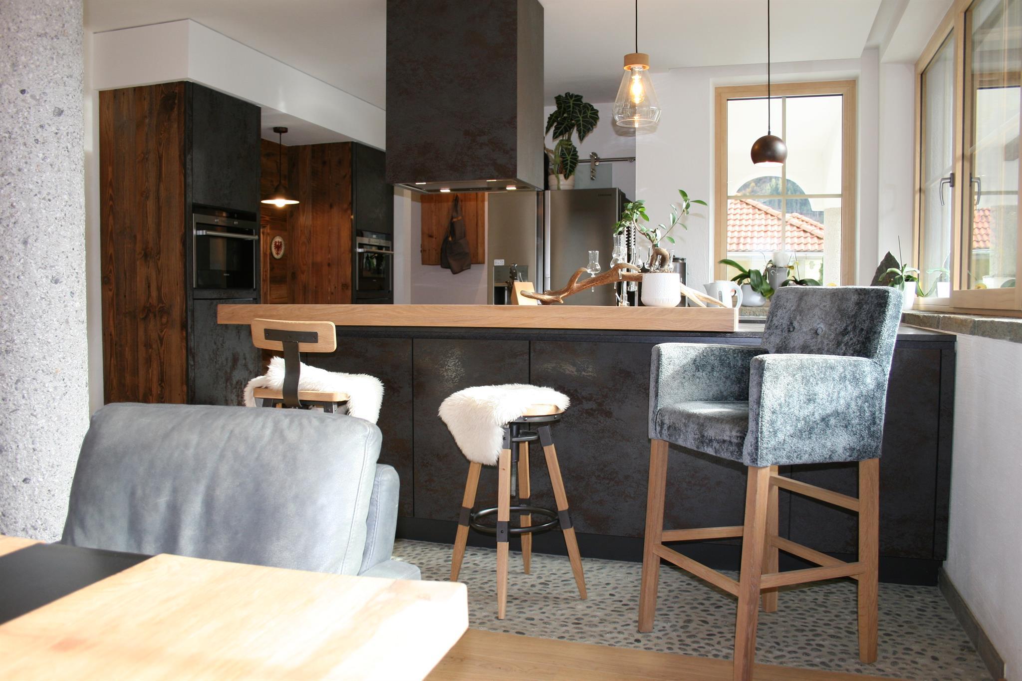Erdgeschoss: Kachelofen, einzigartige Bauernstube Keramikküche mit Side-by-side Kühlschrank inkl. Eiswürfelspender, Mikrowelle, Backofen, Dampfgarer, Induktionskochfeld, Geschirrspüler, Dunstabzug Couchlandschaft mit Samsung Full HD Curved Monitor