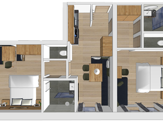 Dieses Appartement verfügt über ein Dreibettzimmer und ein Doppelzimmer inkl.Bettwäsche, Küche und zwei getrennte Badezimmer. Die voll eingerichtete Küche verfügt über ein Cerankochfeld, Backofen, Mikrowelle, Geschirrspüler, Wasserkocher, Kaffeemaschine,