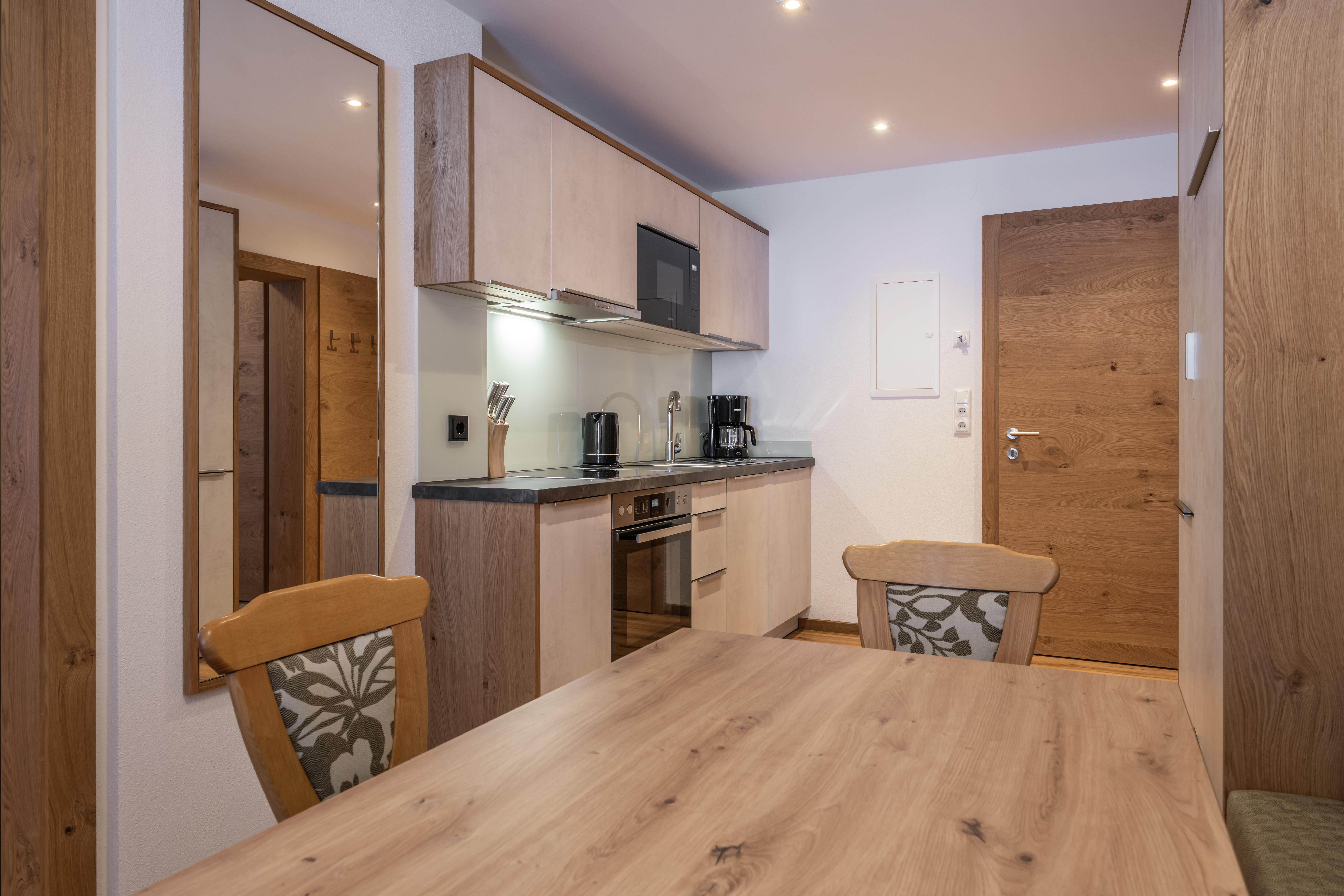 Dieses Appartement verfügt über ein Doppelzimmer inkl.Bettwäsche, Wohnküche mit einer Schlafcouch und einem Badezimmer. Die voll eingerichtete Küche verfügt über einen Elektroherd,Backofen, Wasserkocher, Kaffeemaschine, Kühlschrank mit Gefrierfach und