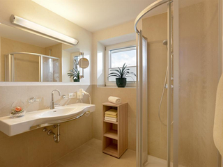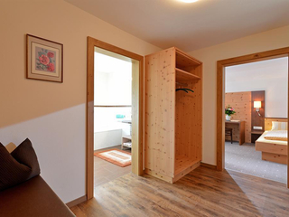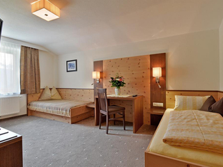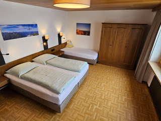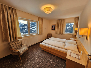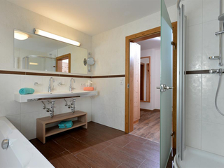 In unserem 45m² großen Familienzimmer finden sich zwei separate Schlafzimmer (1x mit Doppelbett und 1x 2 Einzelbetten). Weiters steht Ihnen ein großzügiges Bad mit Badewanne, Dusche sowie Doppelwaschbecken und ein Vorraum mit Garderobe zur Verfügung. Die