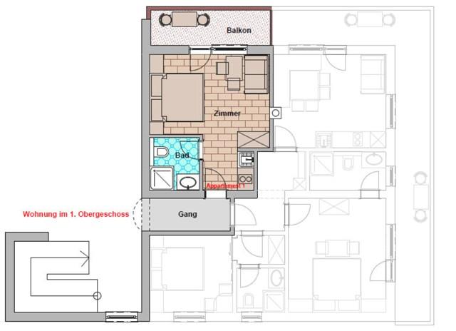 schönes, gemütliches, neu renoviertes Zimmer mit DU/WC, SAT-TV, Radiowecker und Safe (auf Anfrage Küchenbenützung mit Balkon) kein Zimmerservice!