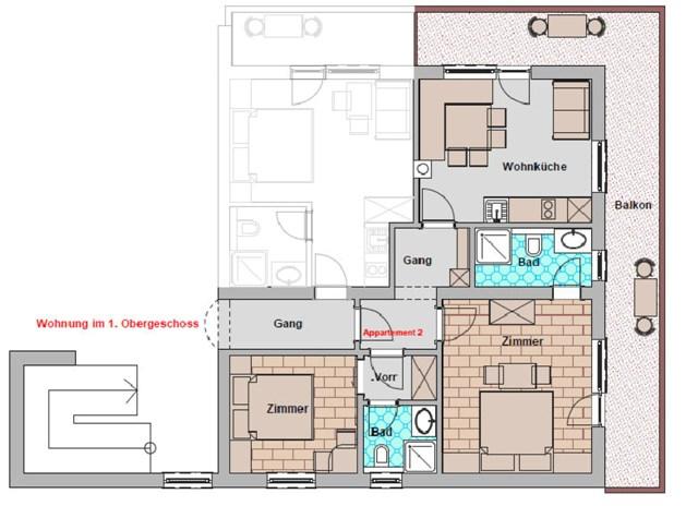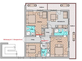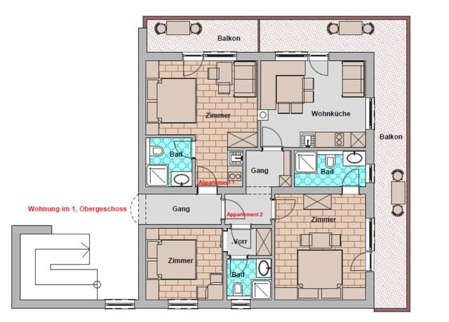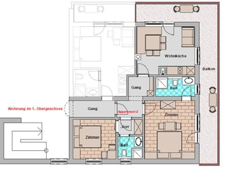 freuen Sie Sich auf unsere neu renovierte, moderne, gemütliche Ferienwohnung mit 2-6 Betten. es gibt dort 2 Doppelzimmer (eines mit Zusatzbett), jedes davon mit DU/WC, SAT-TV Weckradio und Zimmersave außerdem eine gemütliche volleingerichtete Wohnküche