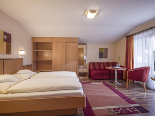 Unser kleines aber feines Hotel verfügt über 9 Doppelzimmer, davon sind zwei Zimmer auf Dreibettzimmer erweiterbar. Weiters verfügen wir über eine geräumige Ferienwohnung inklusive kleiner Kochnische, die bis zu sieben Personen ausreichend Platz