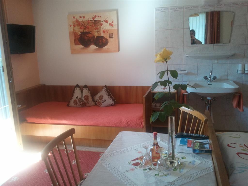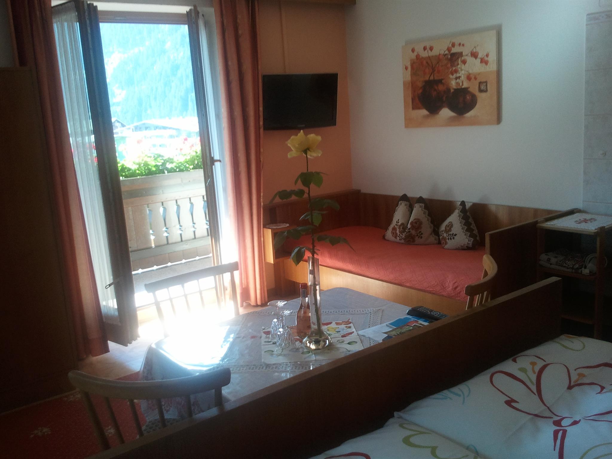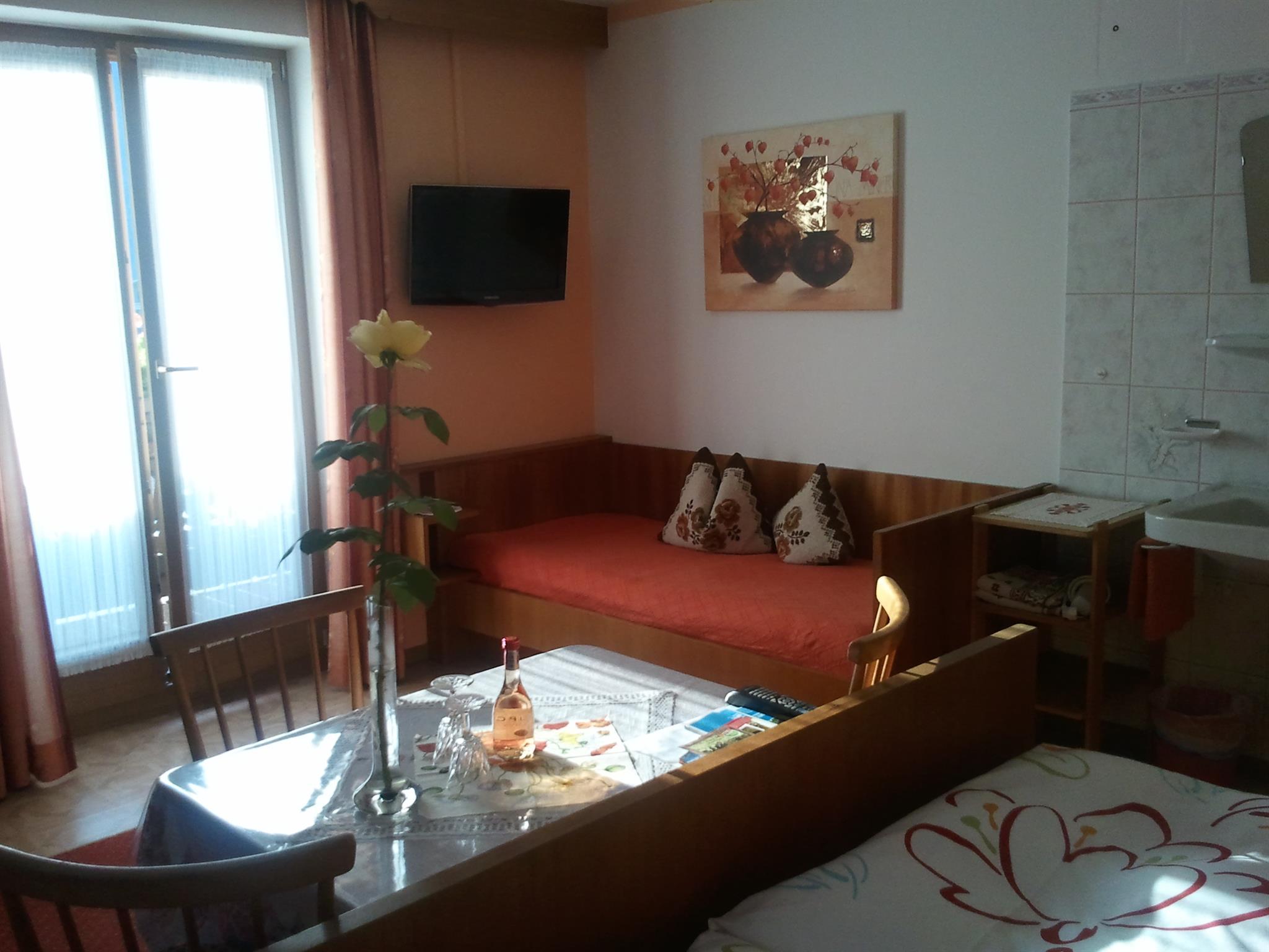 Helles, gemütliches Zimmer mit Dusche, Sat-Tv, Couch und großem Balkon, mit schönem Blick auf die Berge. Eigenes Etagenklo (nur für dieses Zimmer).