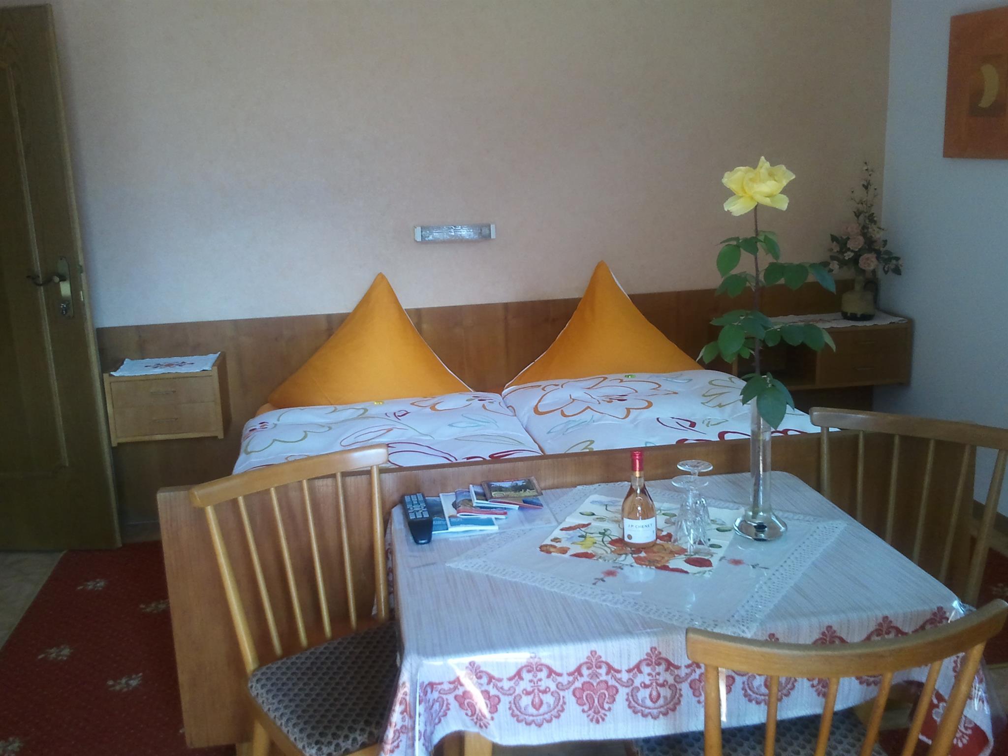 Gemütliches, geräumiges Zimmer mit Sat-Tv, Couch, Balkon und schönem Blick auf die Berge. Zum Zimmer gehört ein schöner Duschraum und eigenem WC.