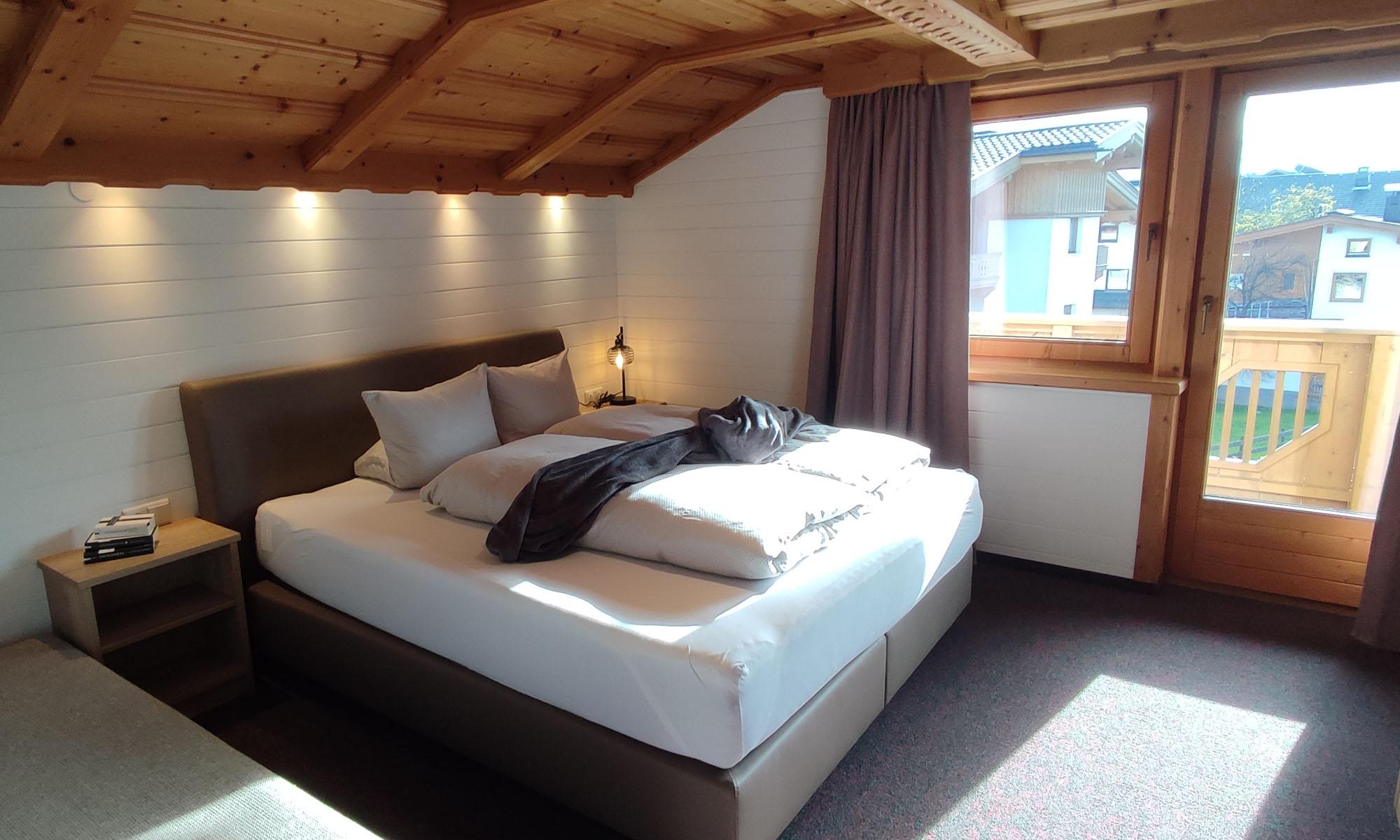 Eine ganze Etage gehört zu unserer abgeschlossenen mit viel hellem Holz eingerichteten Ferienwohnung. Es befinden sich dort 2 NEU!! renovierte, jeweils mit Boxspringbetten ausgestattete, gemütliche und nach Süden ausgerichtete Schlafzimmer. Eine große